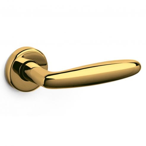 Maniglia per porta interna Flaminia con rosetta e bocchetta tonda. Design by Penta associati.