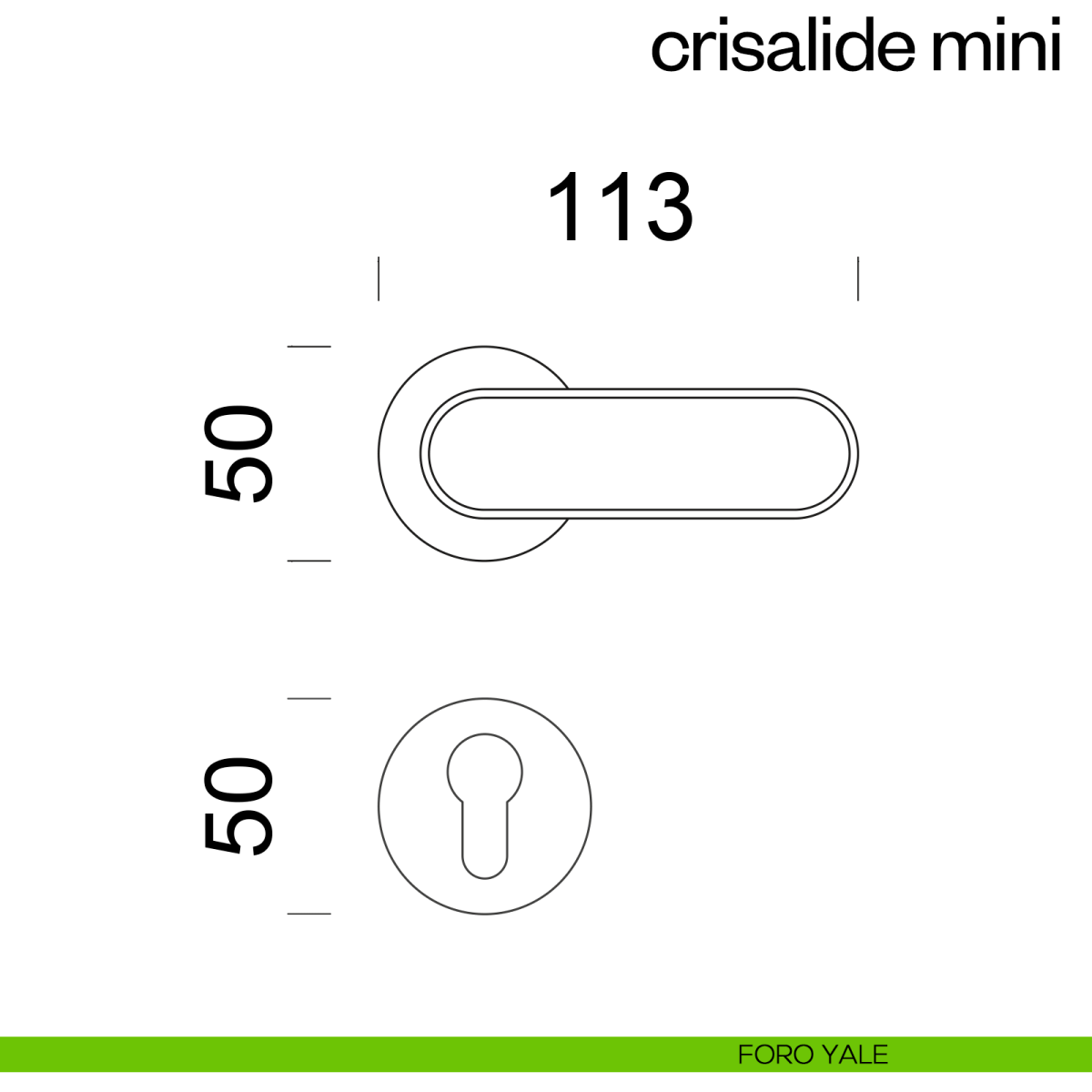 Crisalide Mini dnd viene offerta con diversi tipi di versione, il foro patent (comunemente chiamato foro chiave), la versione yale (foro cilindro), placca cieca senza foratura (dove la chiusura non è necessaria) e nottolino WC (utilizzato in genere nelle porte dei bagni o stanze da letto). Per un ottimale risultato di installazione è consigliato attenersi alle istruzioni di montaggio di cuoi ogni singola maniglia Crisalide Mini dnd Martinelli è corredata.