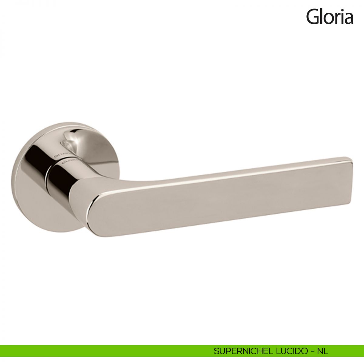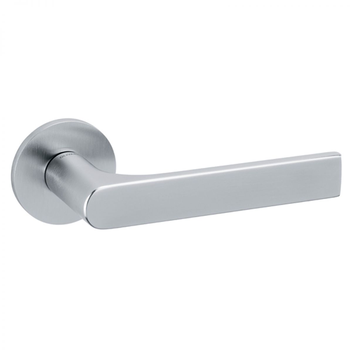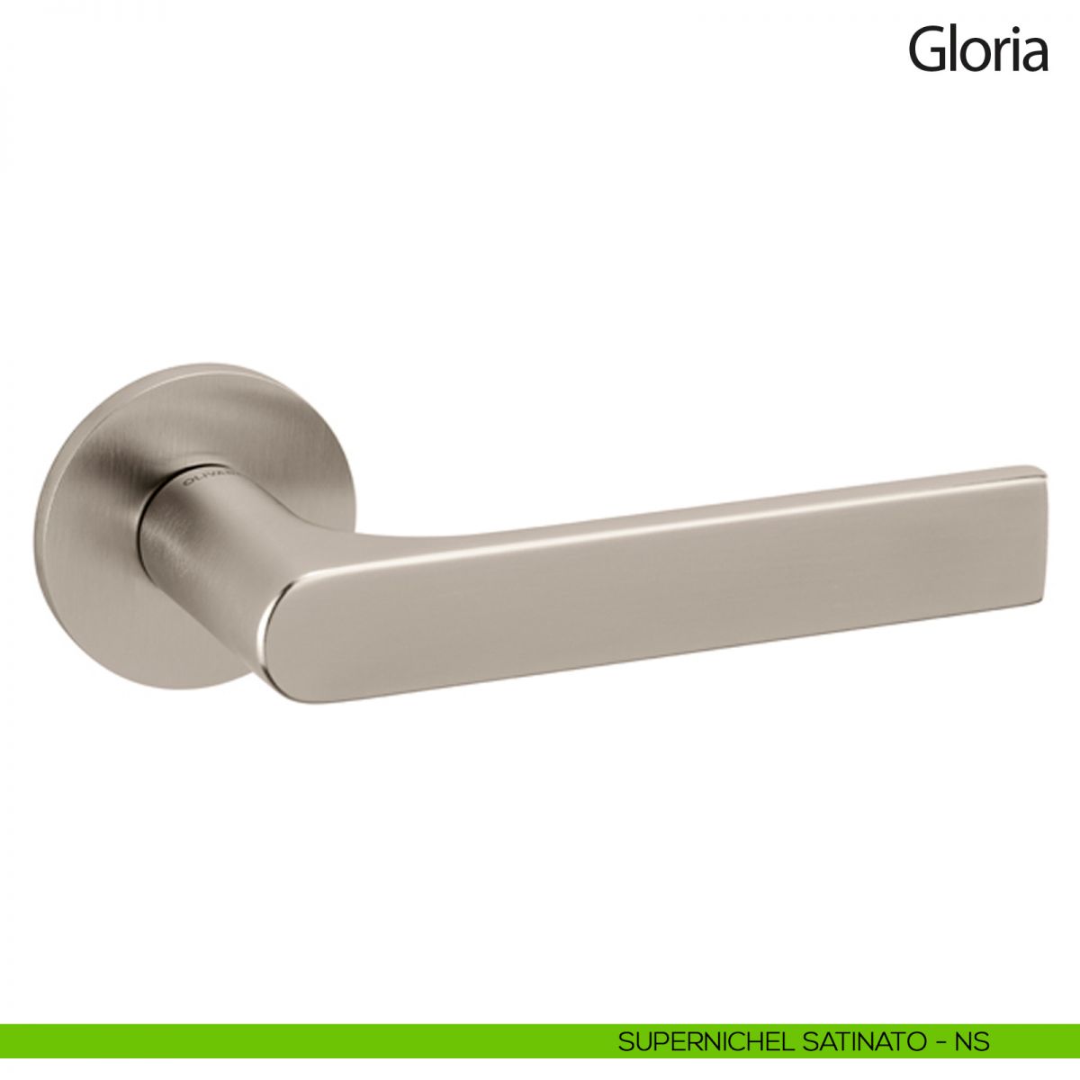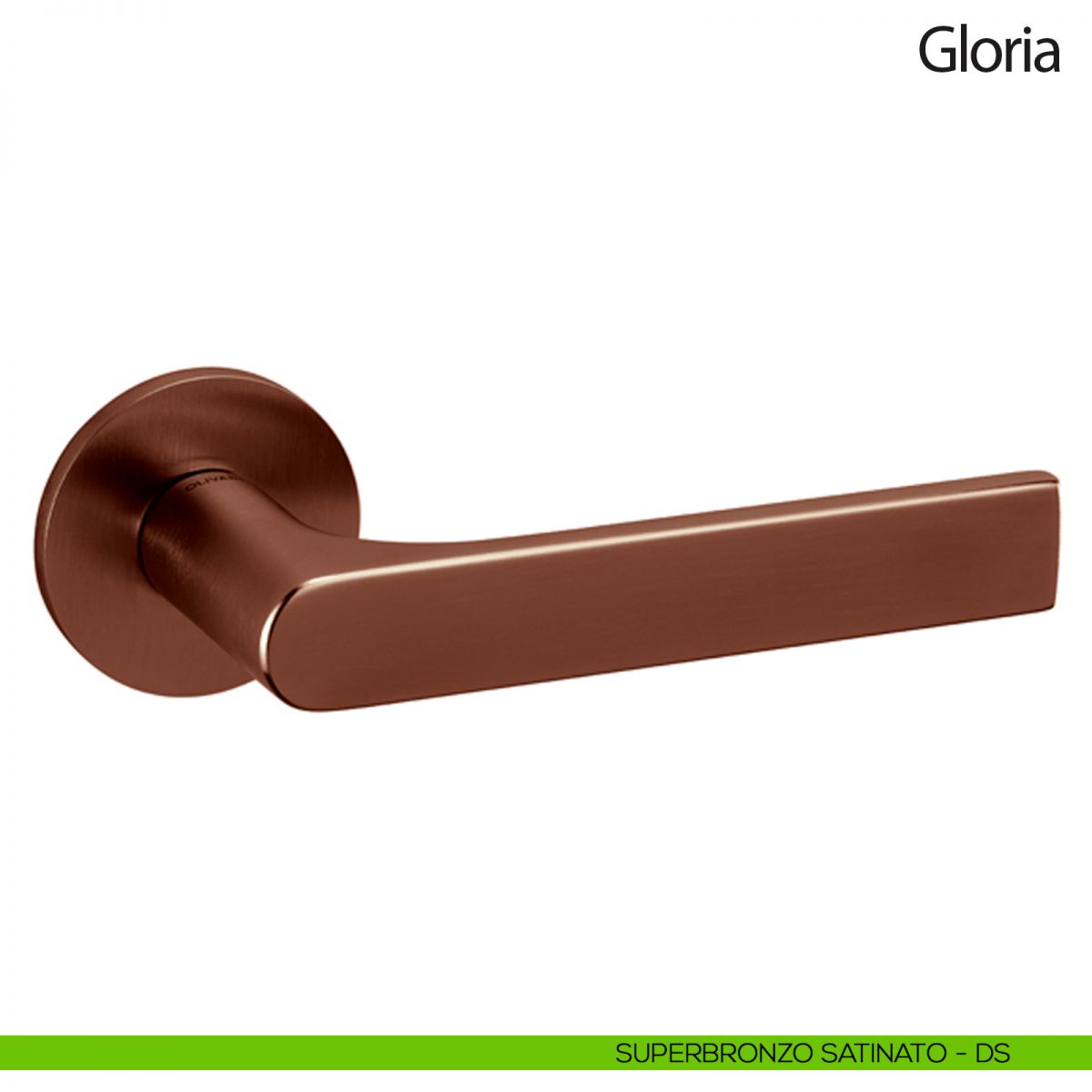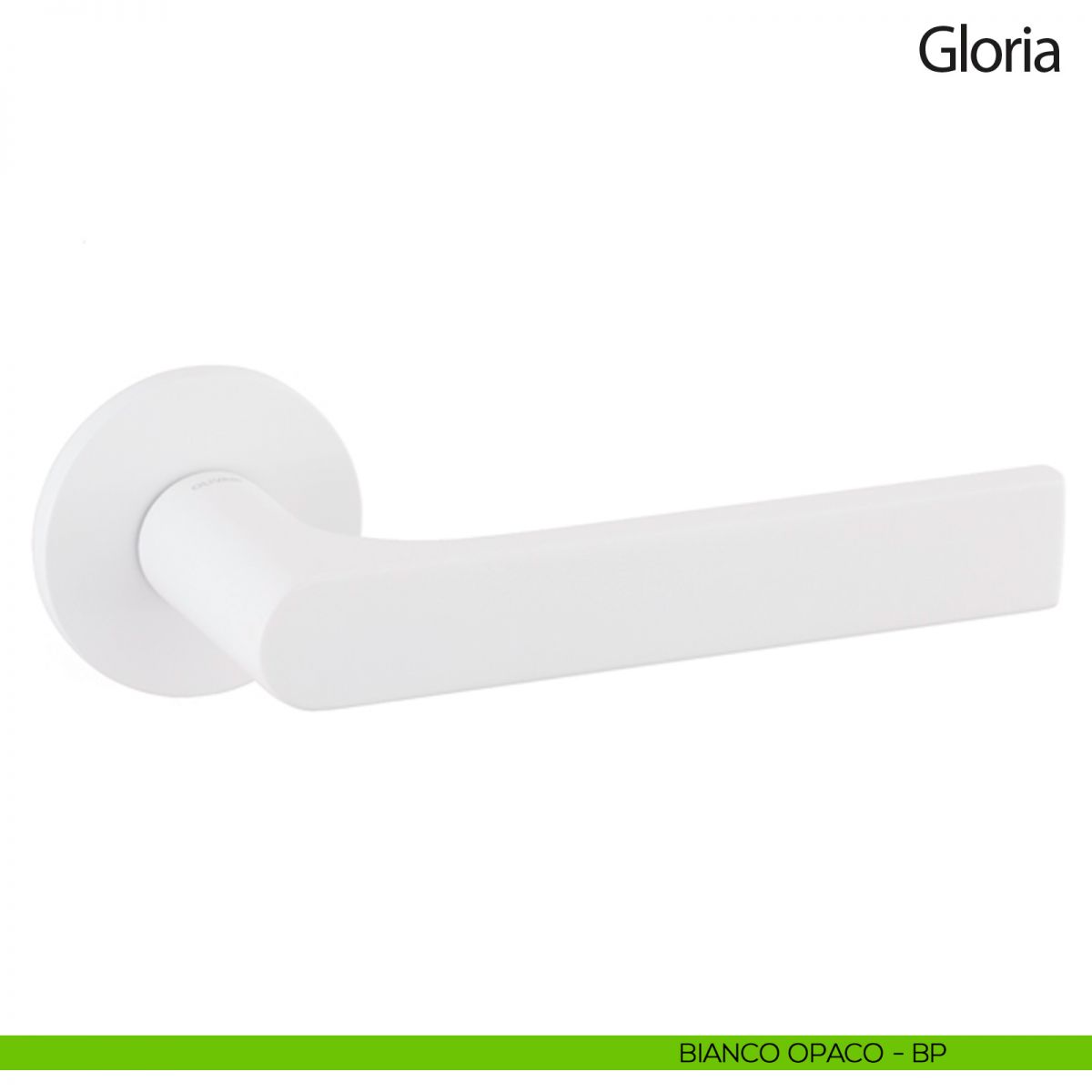 Maniglia per porta interna Gloria Olivari con rosetta e bocchetta tonda bassa. Design by Studio Olivari.
