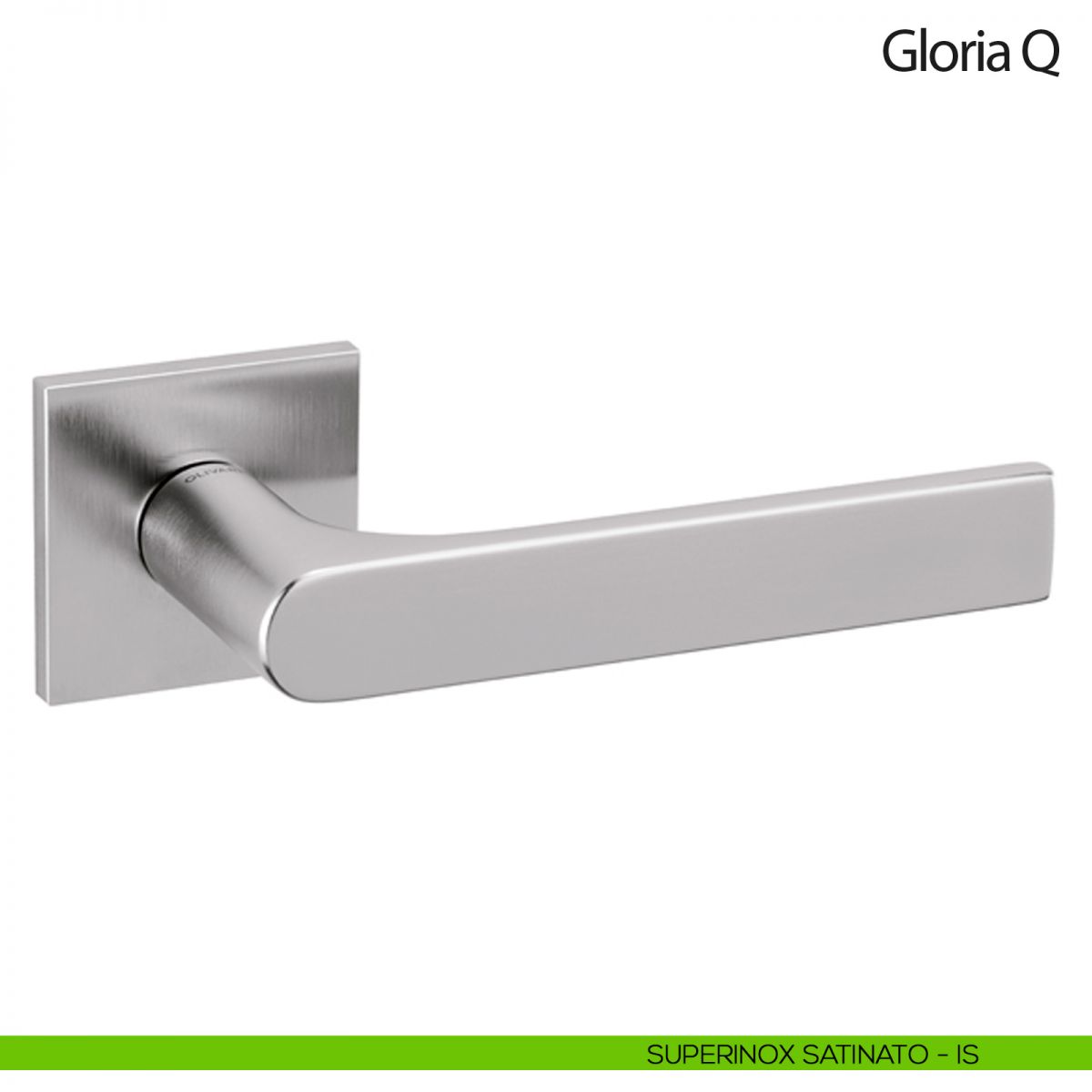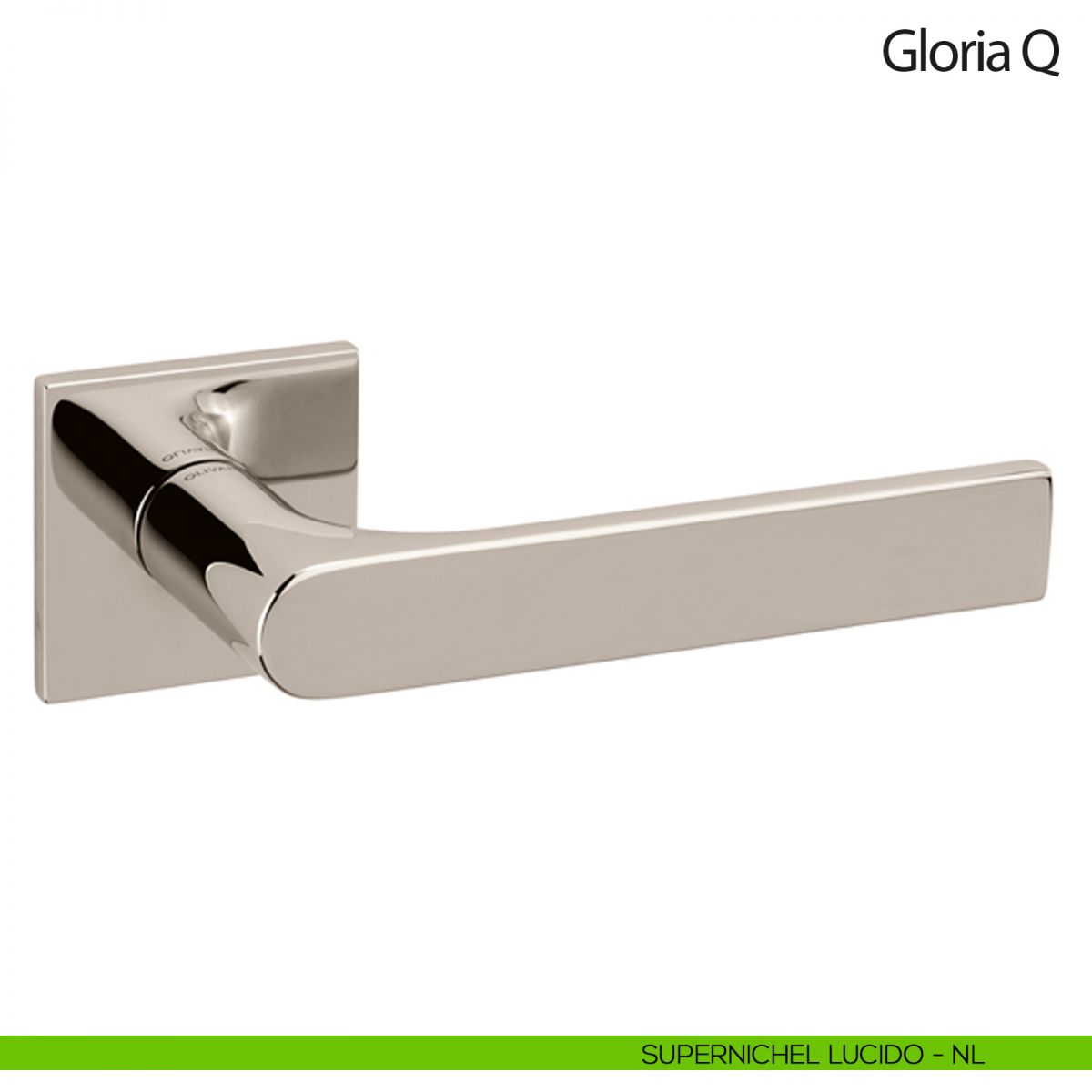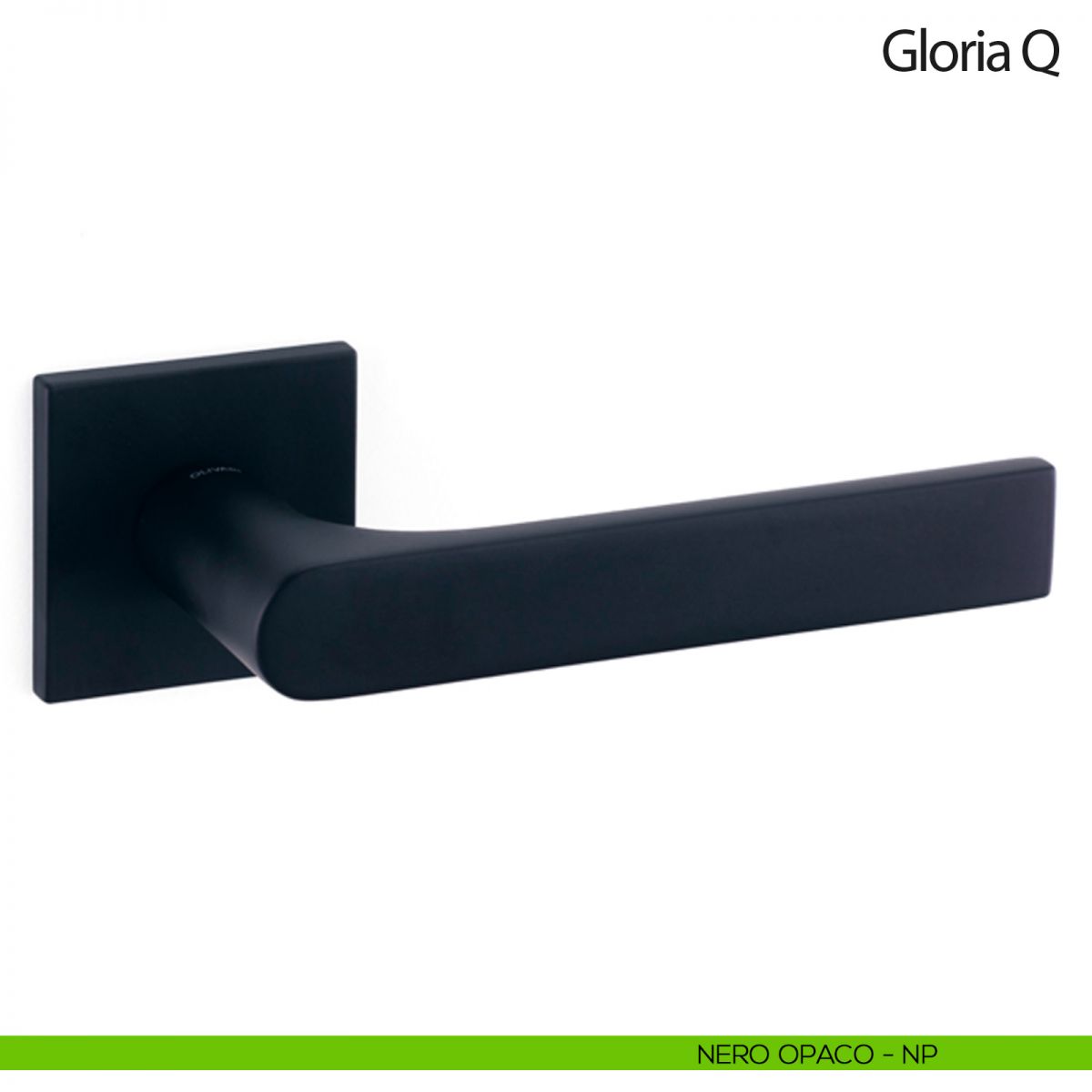 Maniglia per porta interna Gloria Q Olivari con rosetta e bocchetta quadrata bassa. Design by Studio Olivari.