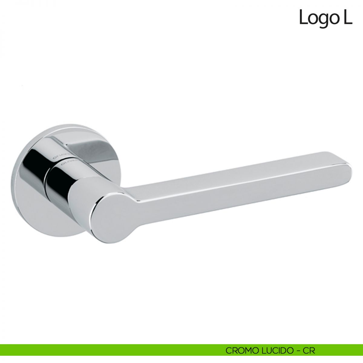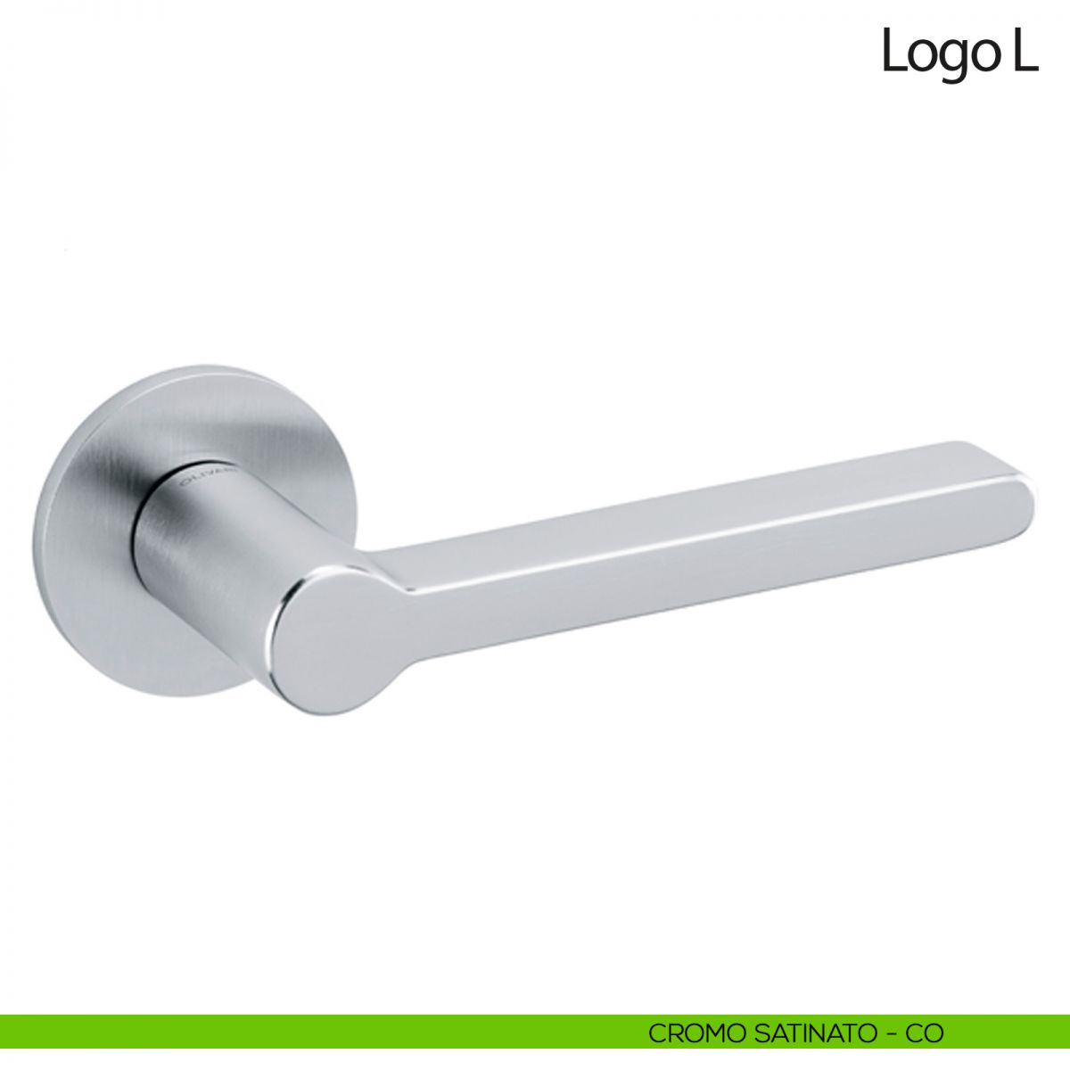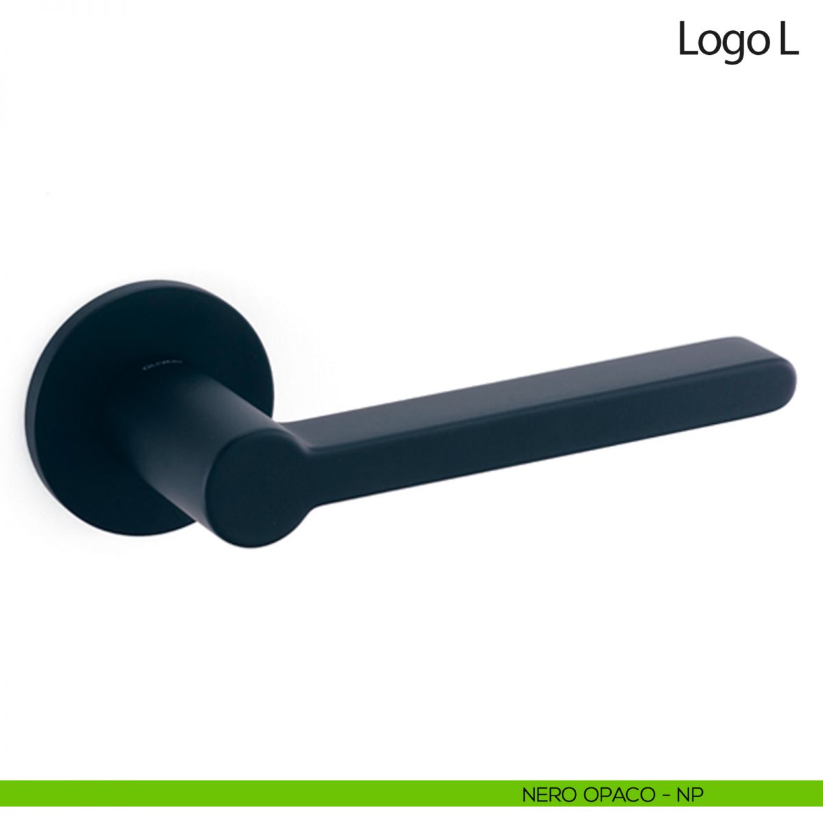Maniglia per porta interna Logo L Olivari con rosetta e bocchetta tonda bassa.
