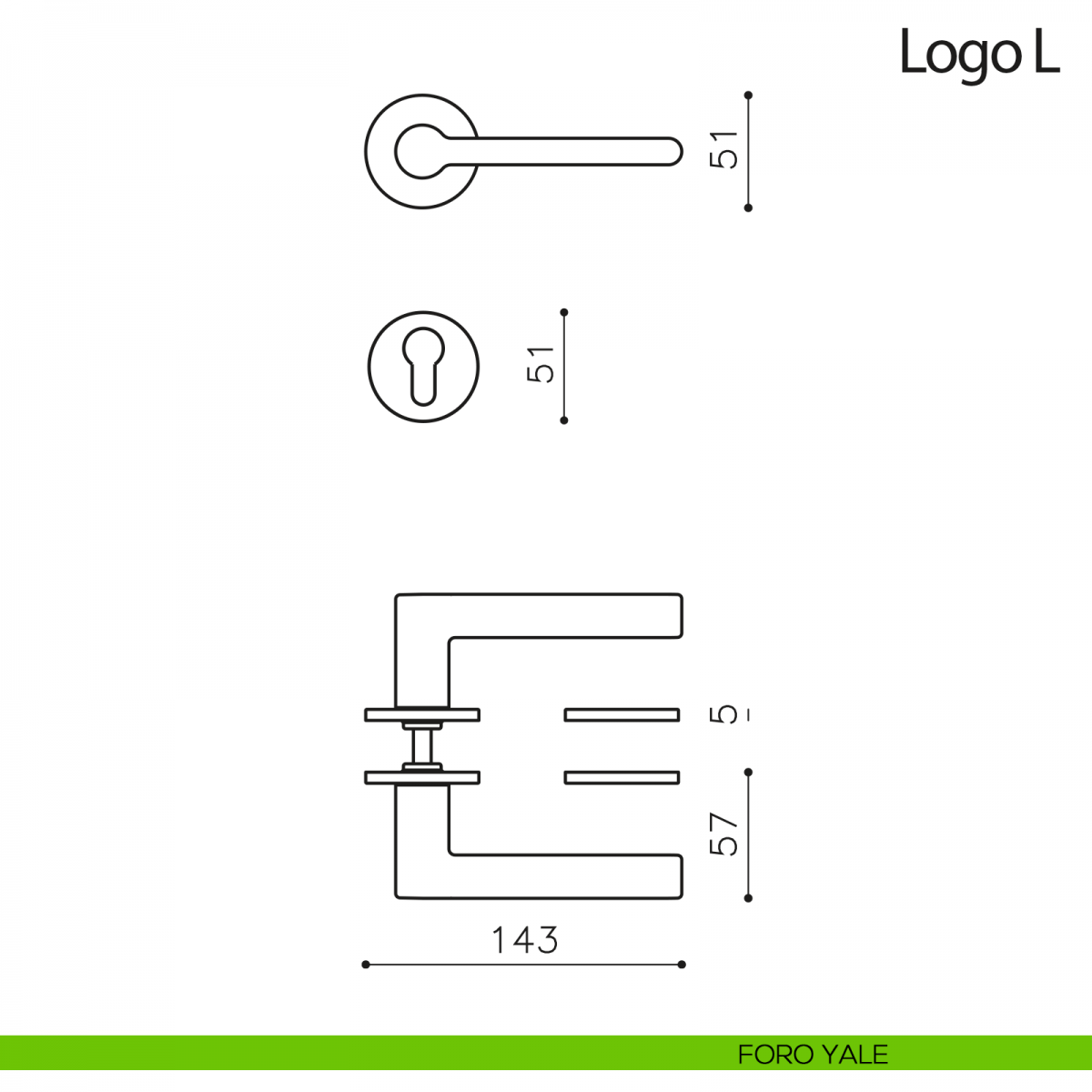 Maniglia per porta interna Logo L Olivari con rosetta e bocchetta tonda bassa. Design by James e Marialaura Irvine.