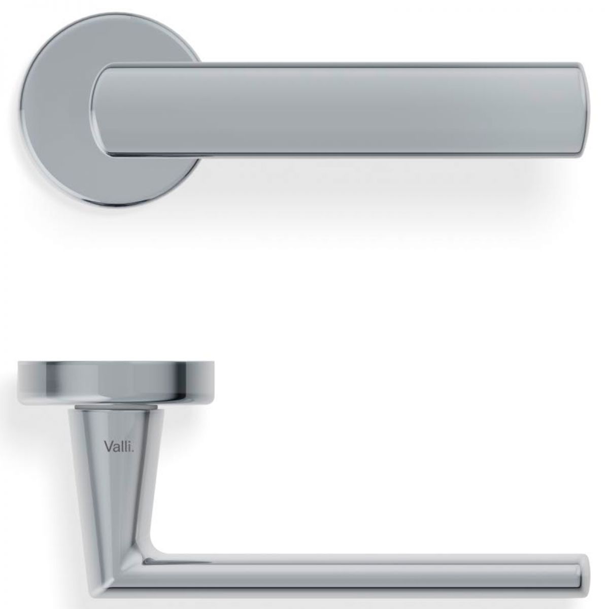Maniglia per porta interna H 411 Valli collezione Lab con rosetta e bocchetta tonda. Design by Valli Workshop.