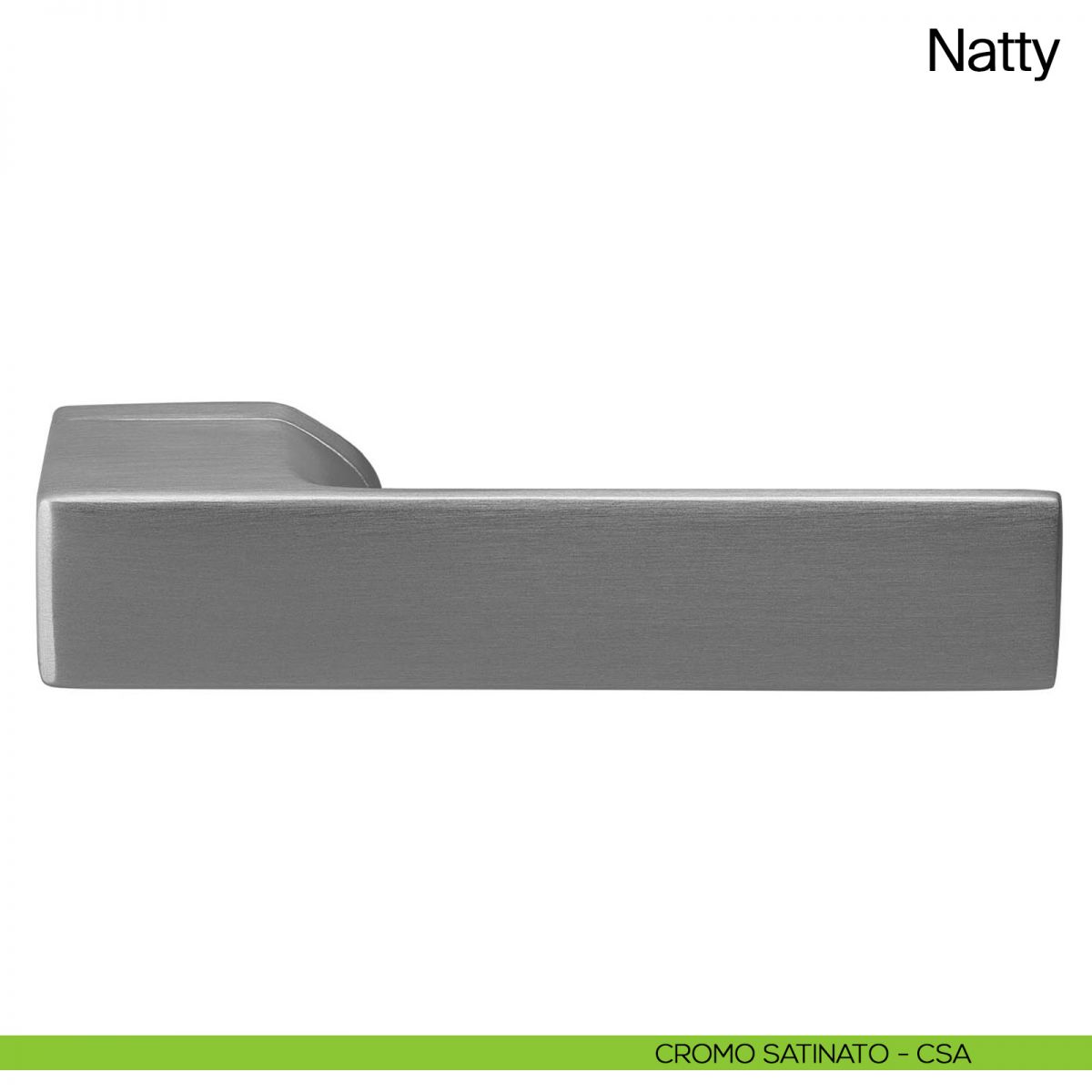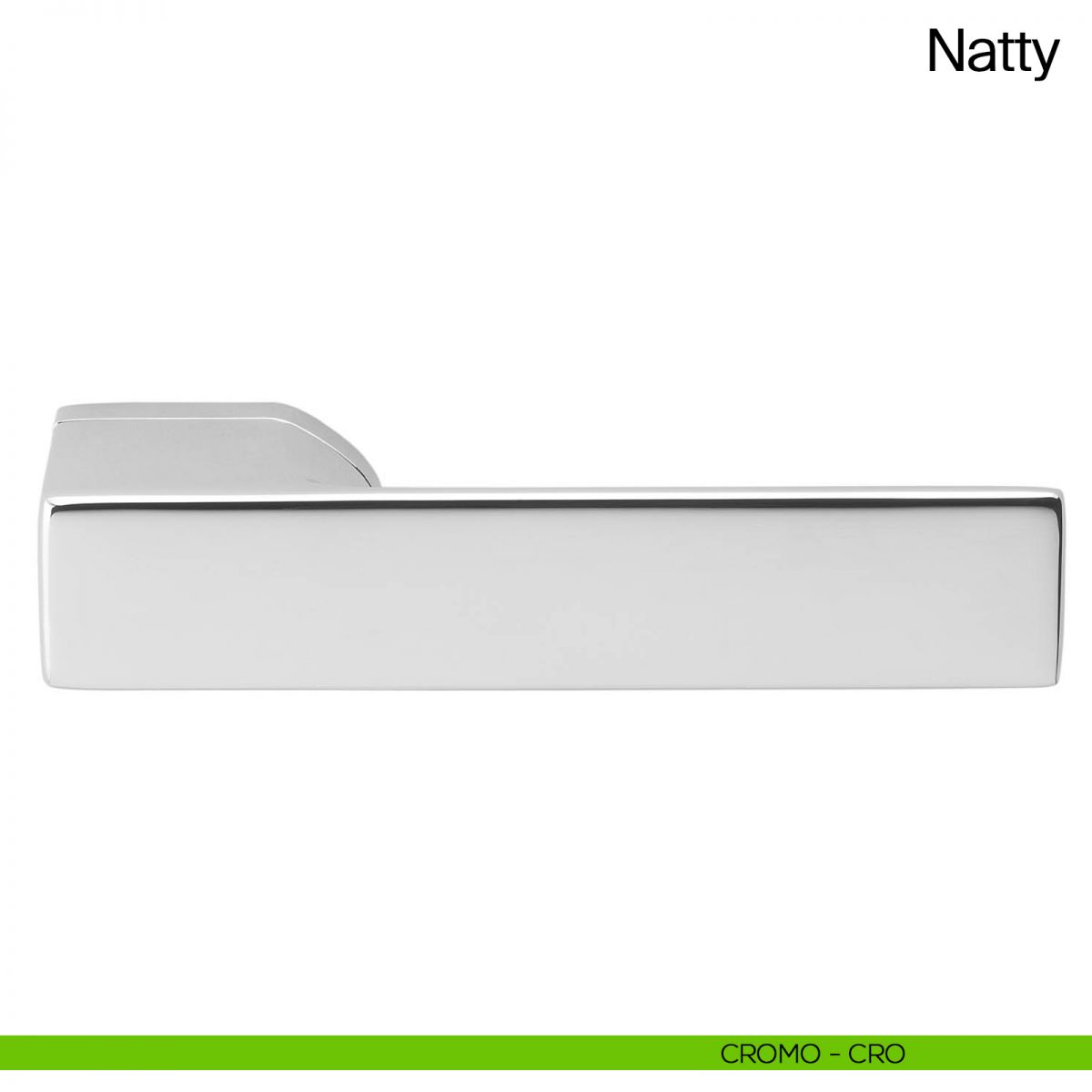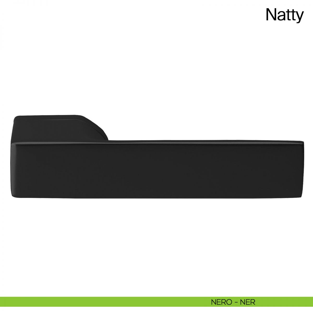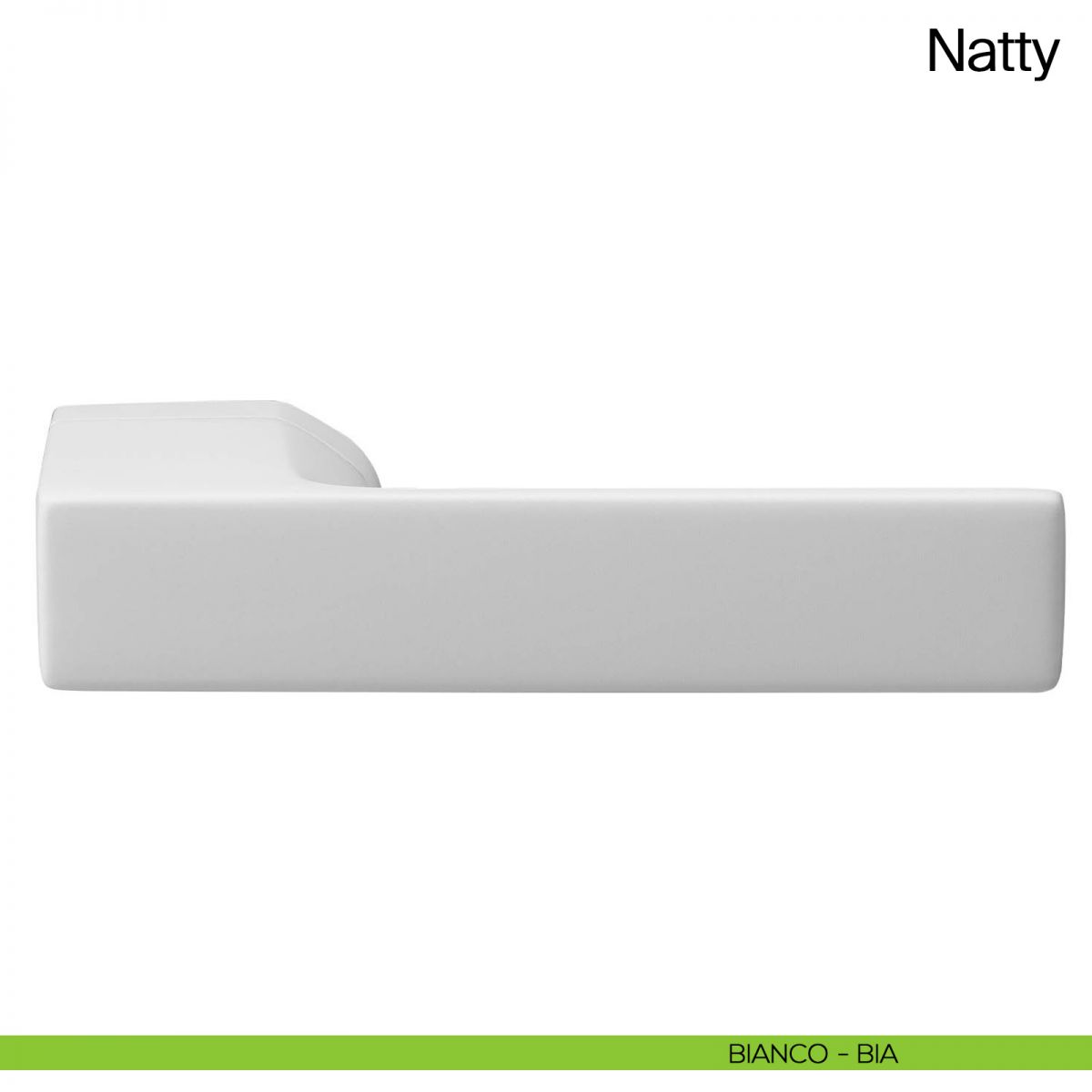 Maniglia per porta Natty Manital con rosetta e bocchetta rettangolare.