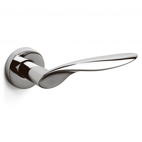 Maniglia per porta interna Wind Olivari con rosetta e bocchetta tonda. Design by Penta associati.