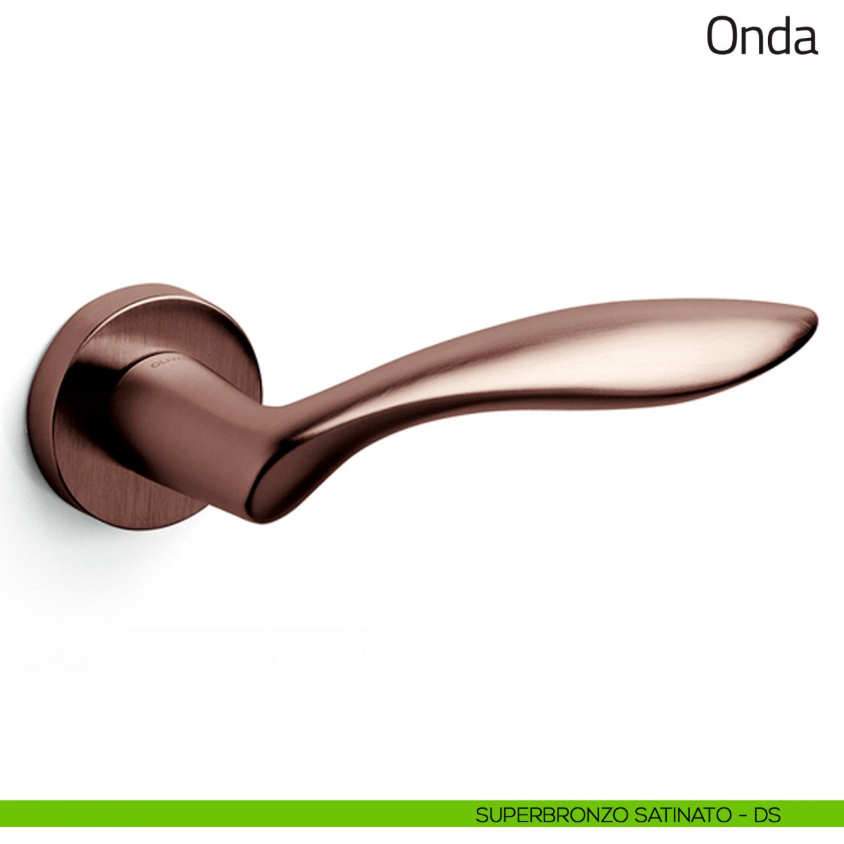 Maniglia per porta interna Onda Olivari con rosetta e bocchetta tonda. Design by Nicola Novelletto.