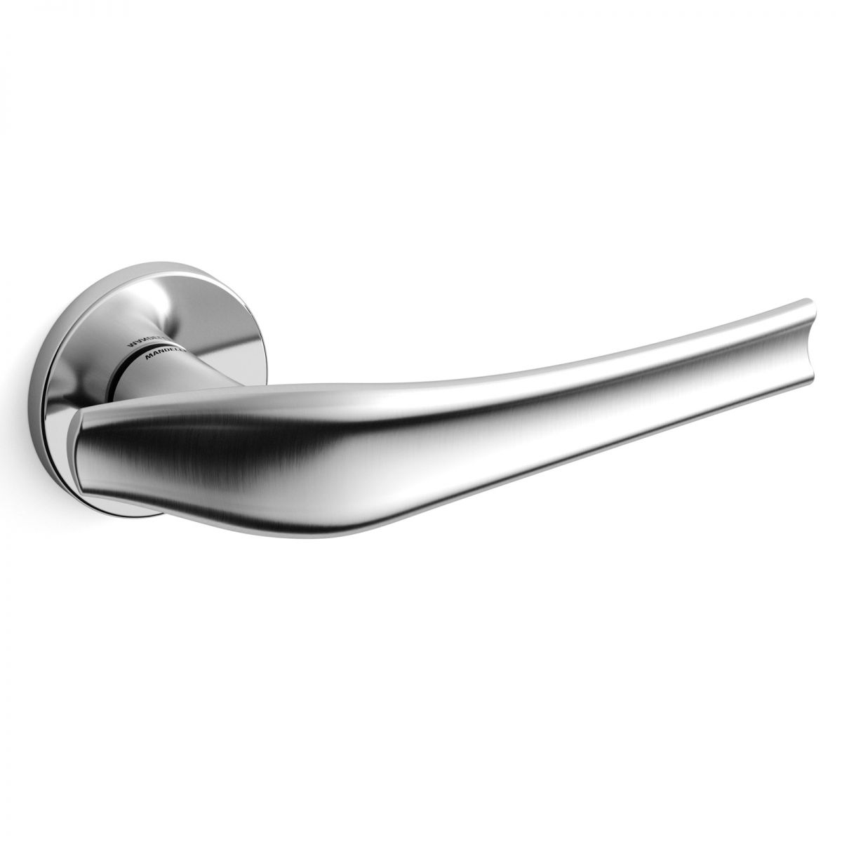 Maniglia per porta interna Aqualung Mandelli con rosetta e bocchetta tonda. Design by Franco Poli.