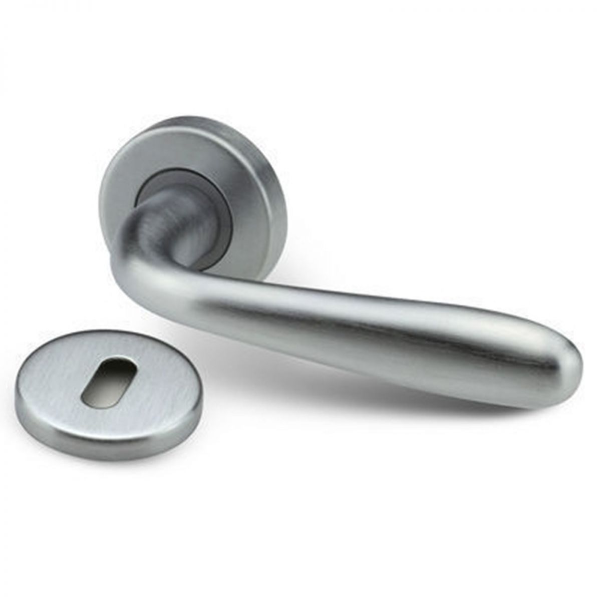Maniglia per porta interna Giada cromo satinato Manigliedesign con rosetta e bocchetta tonda.