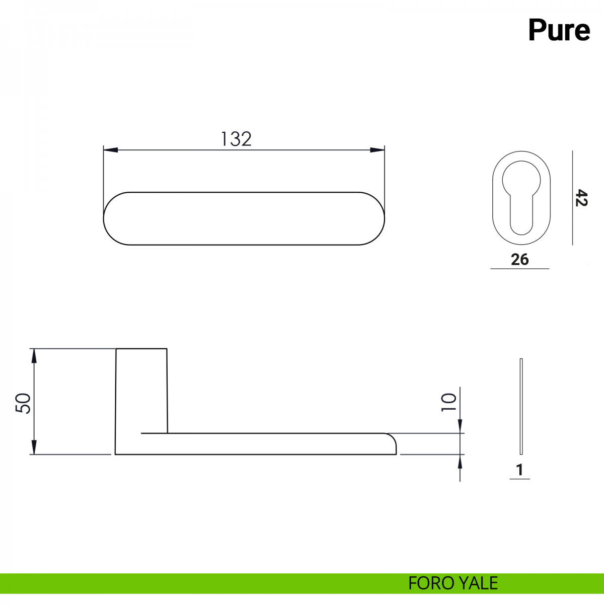 Maniglia per porta interna Pure serie Nuda Verum Italy senza rosetta, senza rondella per foratura ø16. Design by Mattia Ferremi.