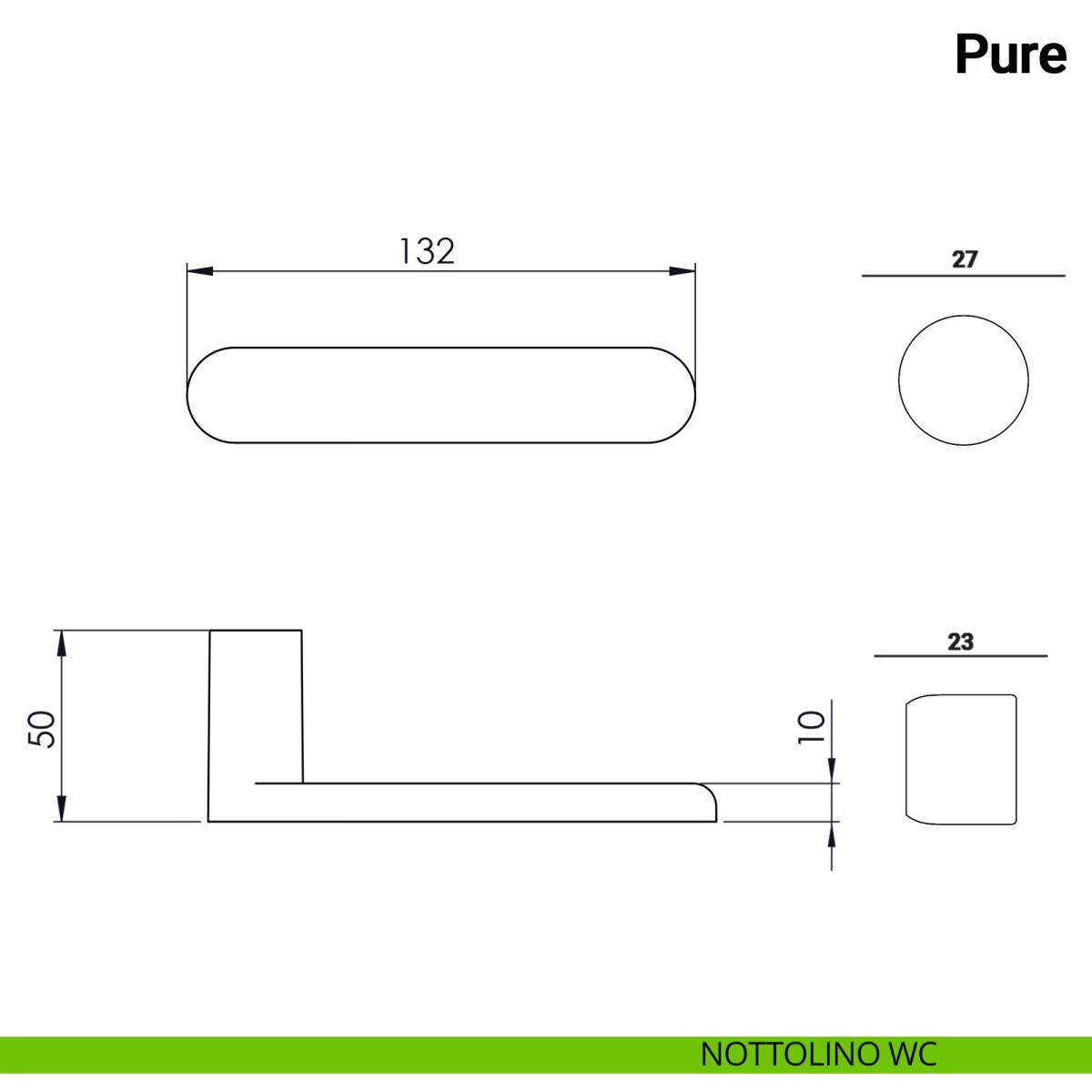 Nottolino WC per porte interne Punto Minimal serie Nuda Verum Italy senza rosetta, foratura nel pannello porta ø16, suggerito per tutte le maniglie e i pomoli Nuda.