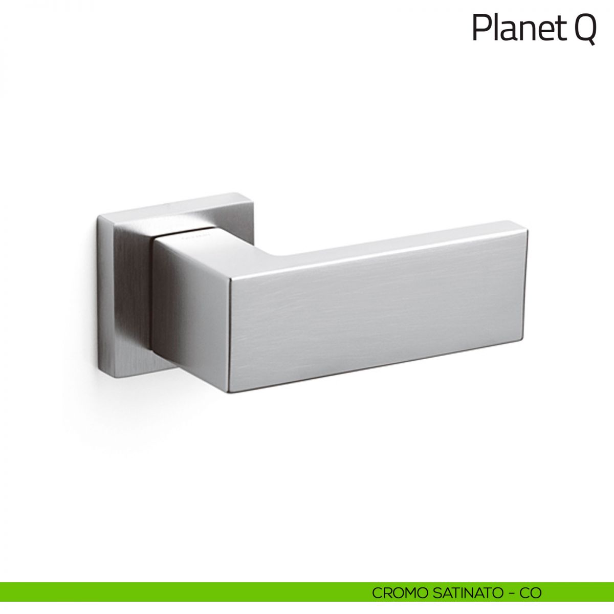 Pomello per porta Planet Q fisso Olivari su rosetta quadrata senza bocchette. Design by Studio Olivari.