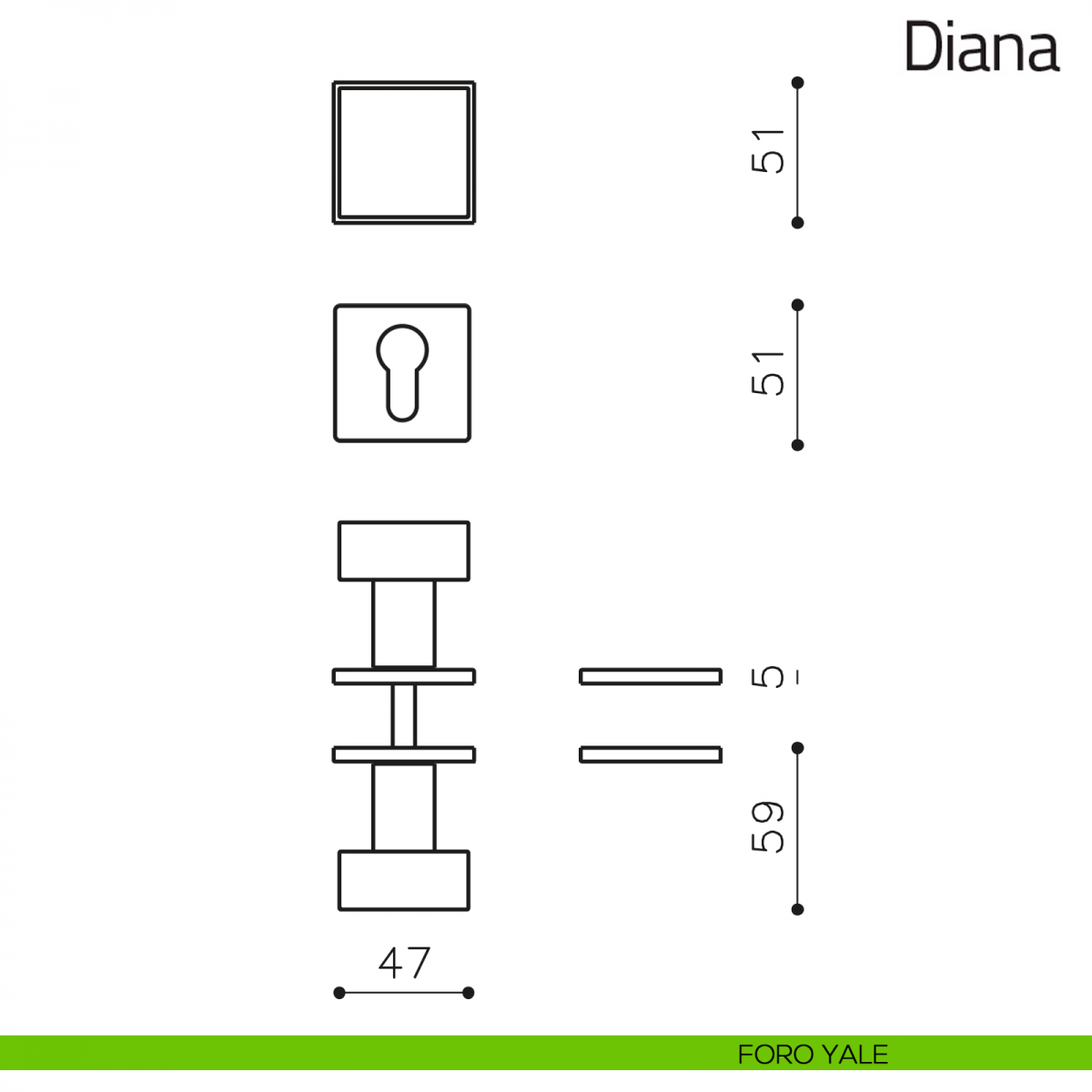Pomello per porta Diana fisso Olivari su rosetta quadrata bassa senza bocchette.