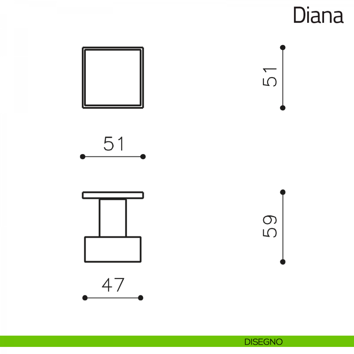 Pomello per porta Diana fisso Olivari su rosetta quadrata bassa senza bocchette.
