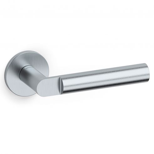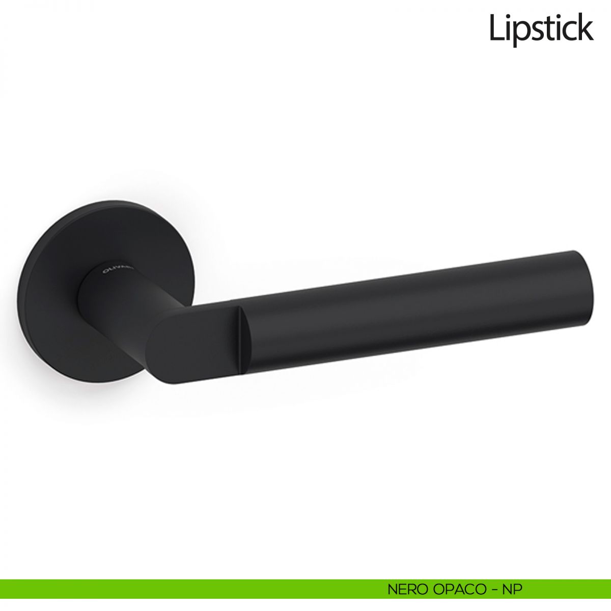 Maniglia per porta interna Lipstick Olivari con rosetta e bocchetta tonda bassa. Design by Renzo e Matteo Piano.