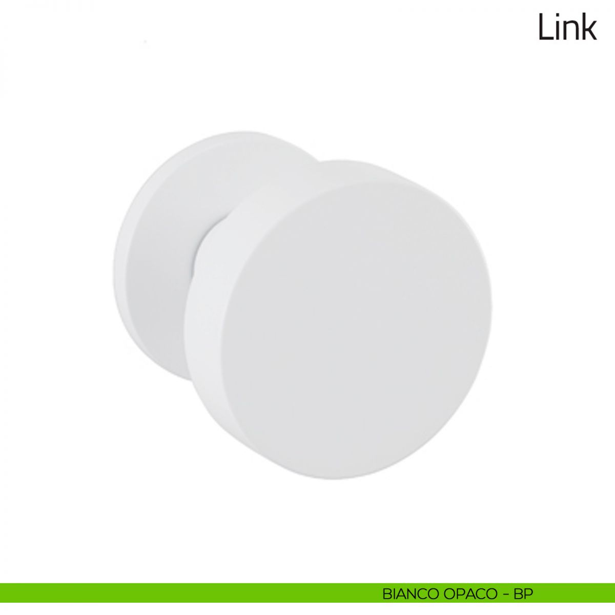 Pomello per porta Link fisso Olivari su rosetta tonda ø51 mm bassa senza bocchette. Design by Piero Lissoni.