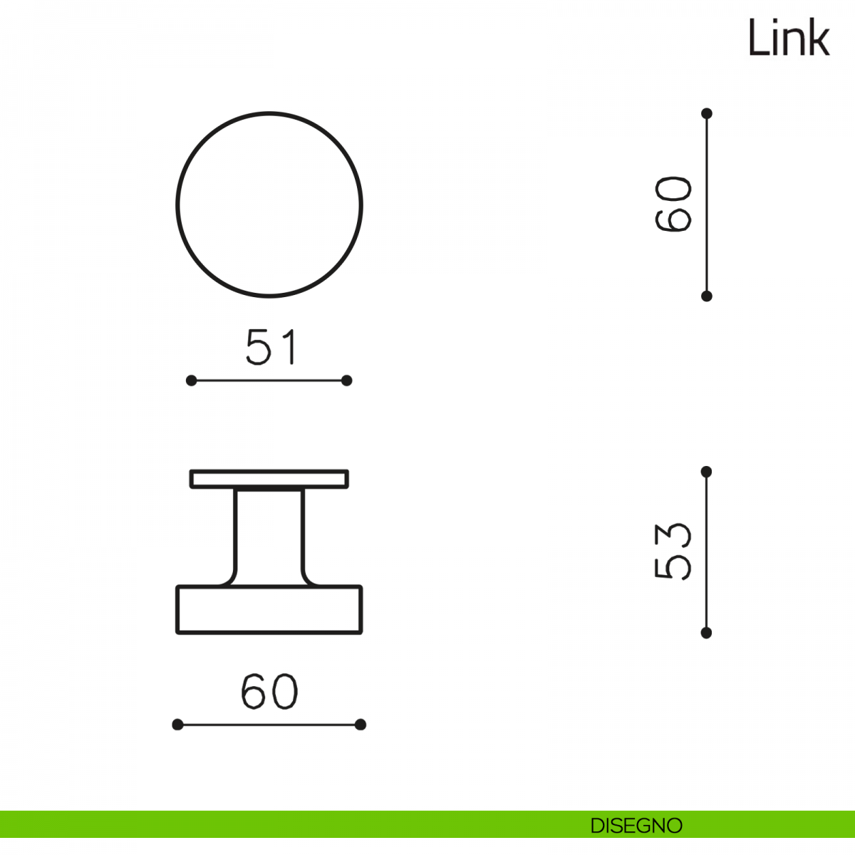 Pomello per porta Link fisso Olivari su rosetta tonda ø51 mm bassa senza bocchette.