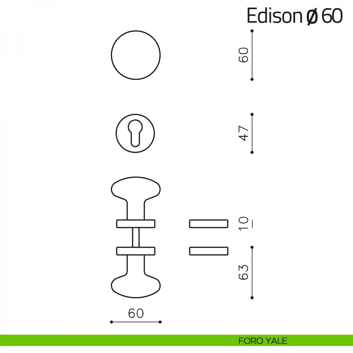 Pomello per porta Edison ø60 mm fisso Olivari su rosetta tonda ø47 mm senza bocchetta.