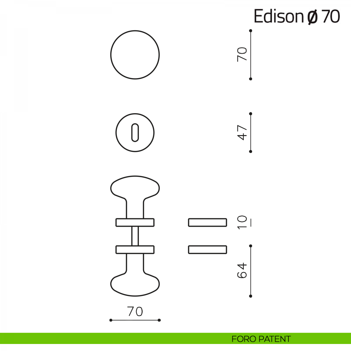 Pomello per porta interna Edison ø70 mm girevole Olivari con rosetta e bocchetta tonda ø47 mm. Design by Sergio Mazza e Giuliana Gramigna.