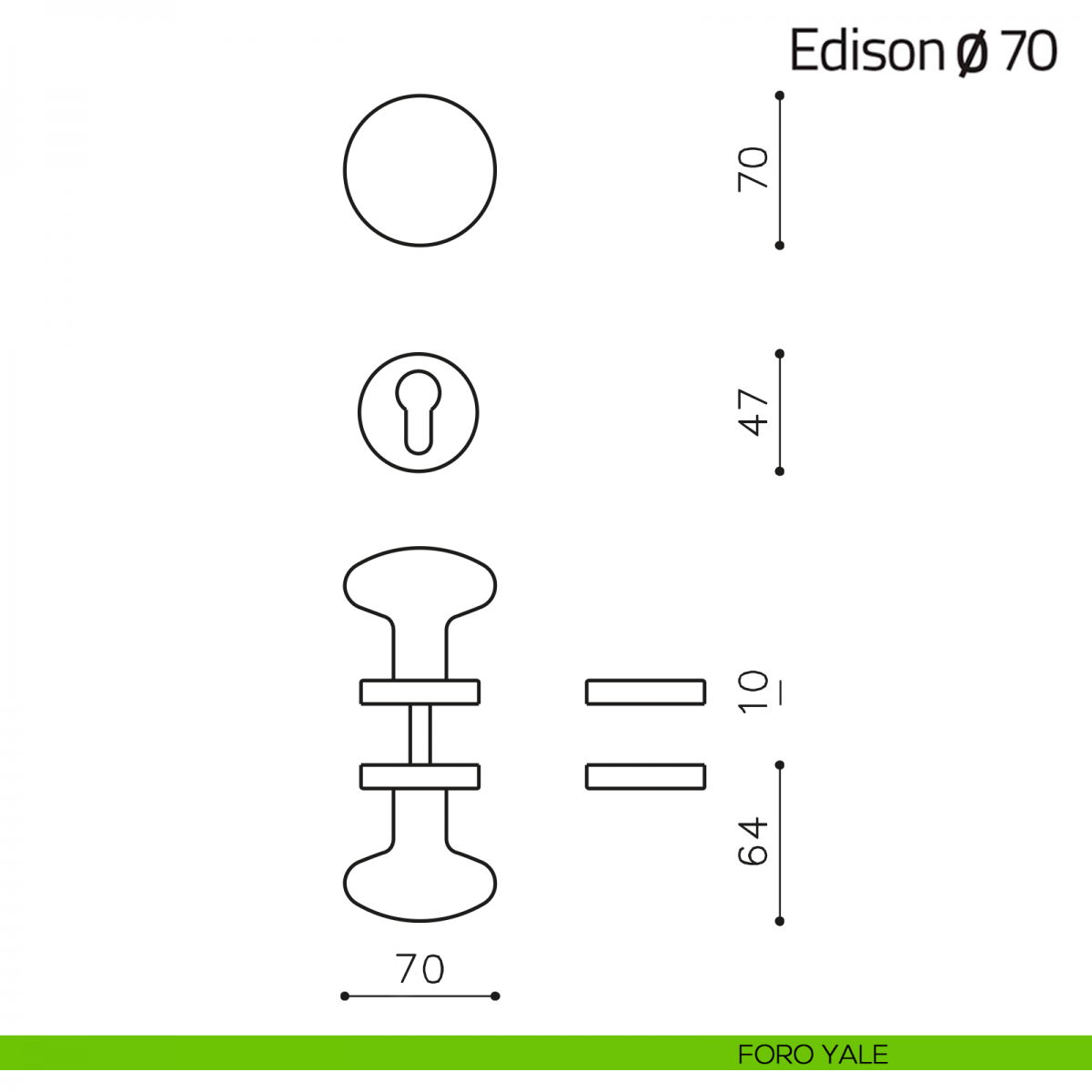 Pomello per porta Edison ø70 mm fisso Olivari su rosetta tonda ø47 mm senza bocchetta.