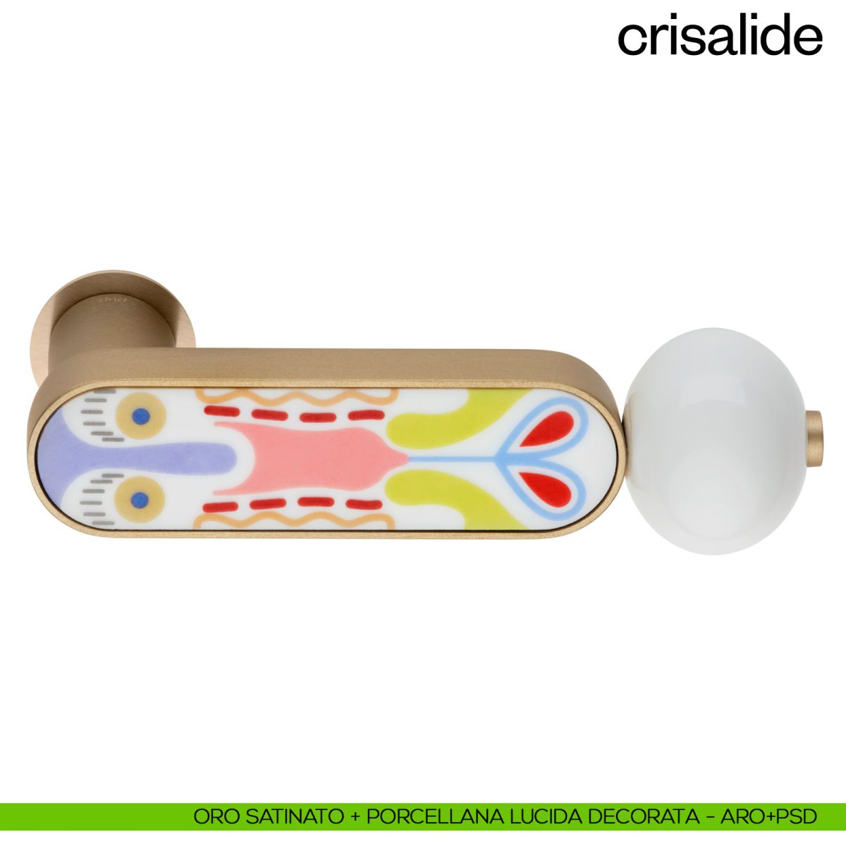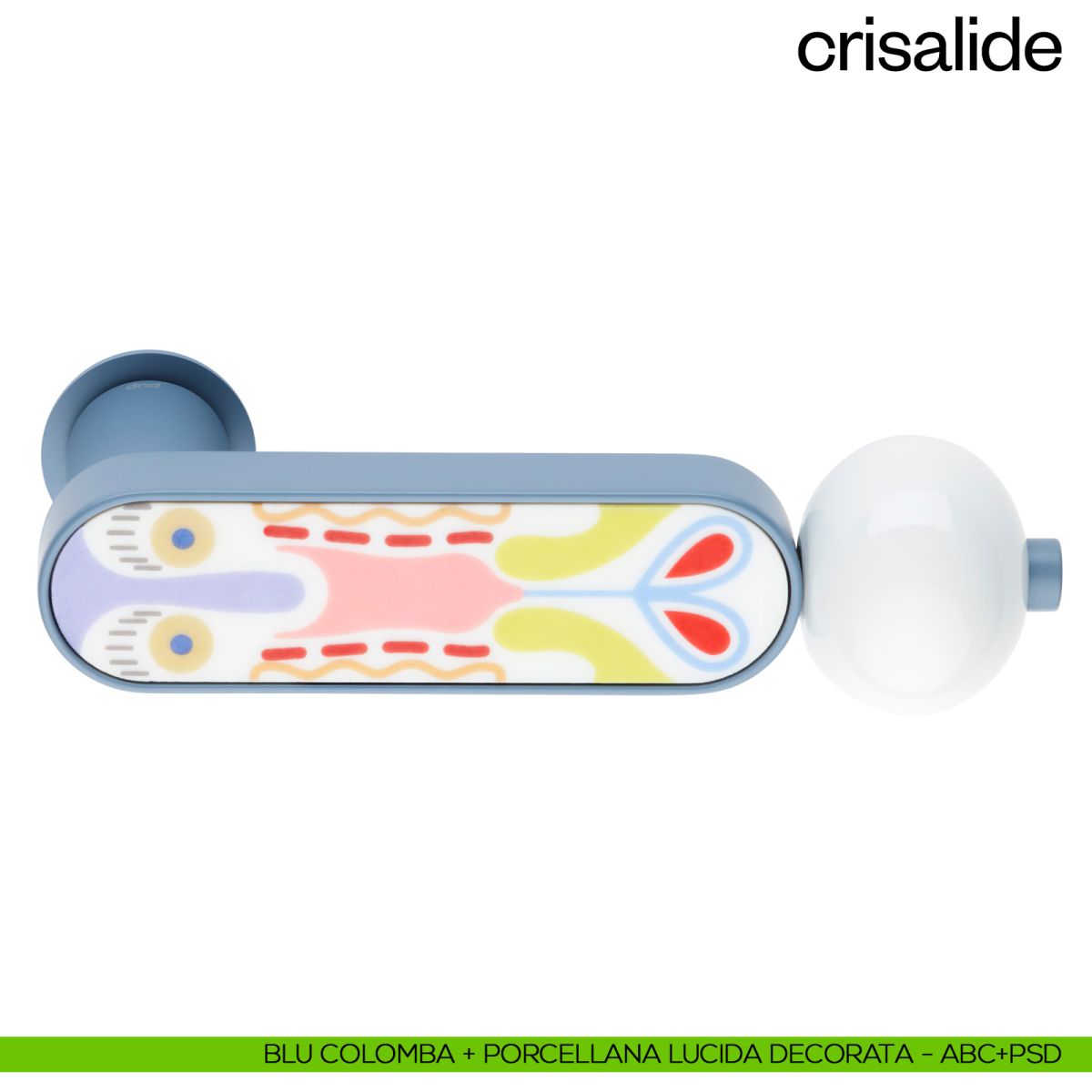 Crisalide dnd è una maniglia eclettica e creativa, progettata da Elena Salmistraro, che le conferisce un aspetto allegro e colorato. La porcellana viene riattualizzata da un cromatismo spinto che richiama la bellezza delicata e leggera della farfalla. La forma stessa della maniglia Crisalide dnd, con la sua sfera bianca leggermente schiacciata sulla leva, rievoca le linee aggraziate del meraviglioso insetto, risultando al contempo confortevole all’uso. La maniglia in porcellana dnd Crisalide è disponibile in diverse finiture e colori per adattarsi alle esigenze di tutti.