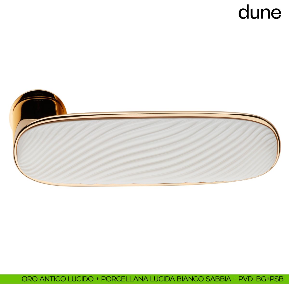 Maniglia per porta interna Dune dnd Handles con porcellana lucida bianca sabbia e con rosetta minimale Unico.