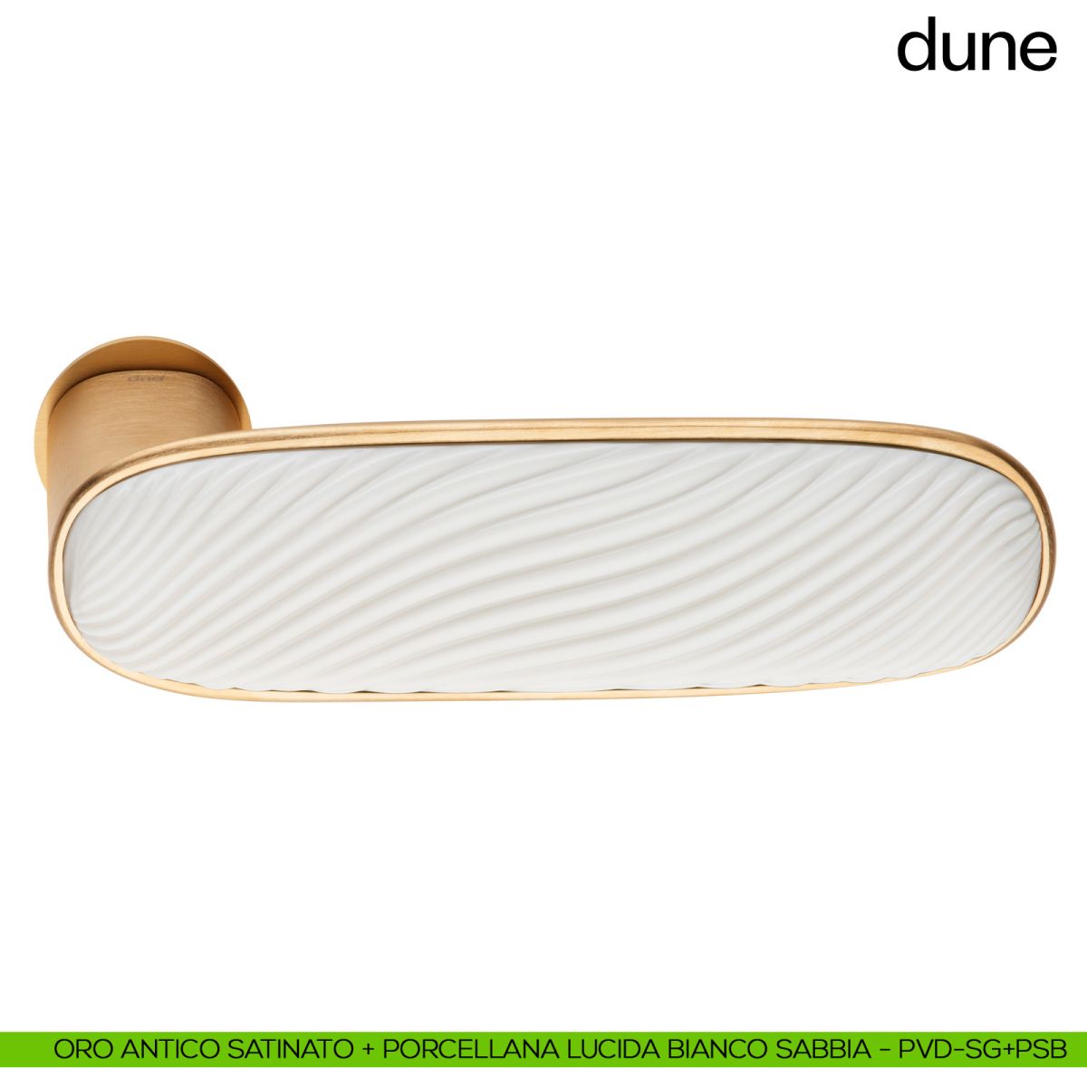 Le linee sinuose dei morbidi solchi lasciati dal vento sulla sabbia definiscono Dune, leggera e solida al tempo stesso. L’utilizzo della porcellana come materiale di elezione si unisce alla più moderna tecnologia per dare vita a Dune, una maniglia visivamente leggera che contrasta con la solidità dei materiali.