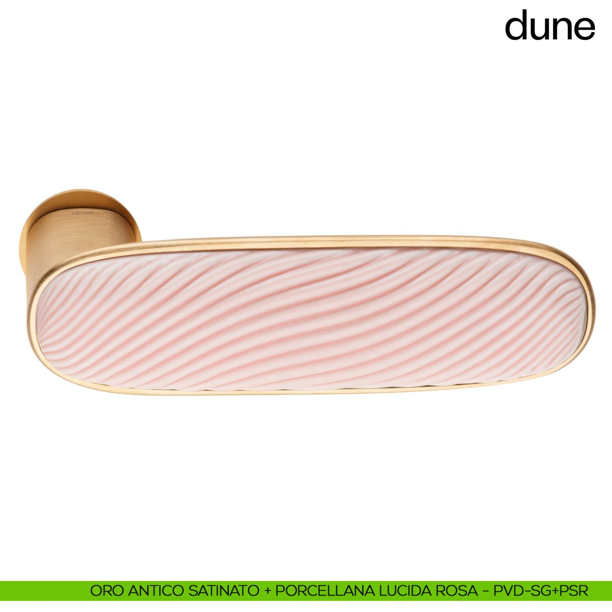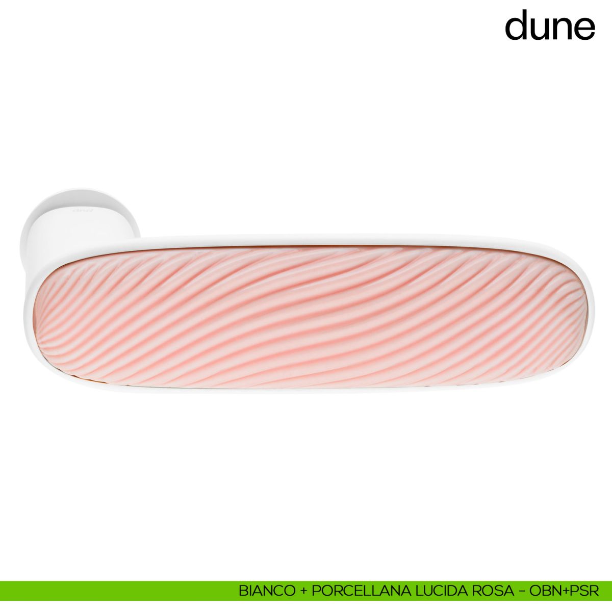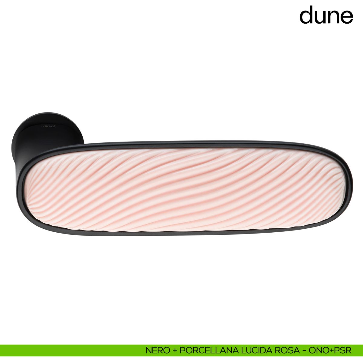 Maniglia per porta interna Dune dnd Handles con porcellana lucida rosa con rosetta minimale Unico.