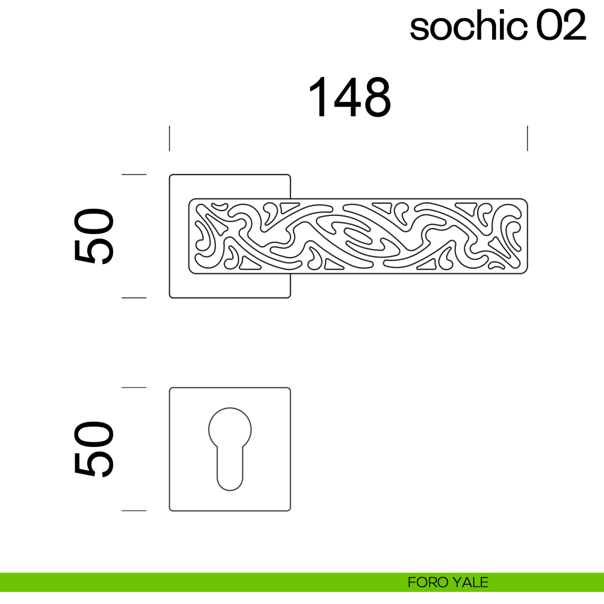 Sochic 02 dnd viene offerta con diversi tipi di versione, il foro patent (comunemente chiamato foro chiave), la versione yale (foro cilindro), placca cieca senza foratura (dove la chiusura non è necessaria) e nottolino WC (utilizzato in genere nelle porte dei bagni o stanze da letto). Per un ottimale risultato di installazione è consigliato attenersi alle istruzioni di montaggio di cuoi ogni singola maniglia Sochic 02 dnd Martinelli è corredata.