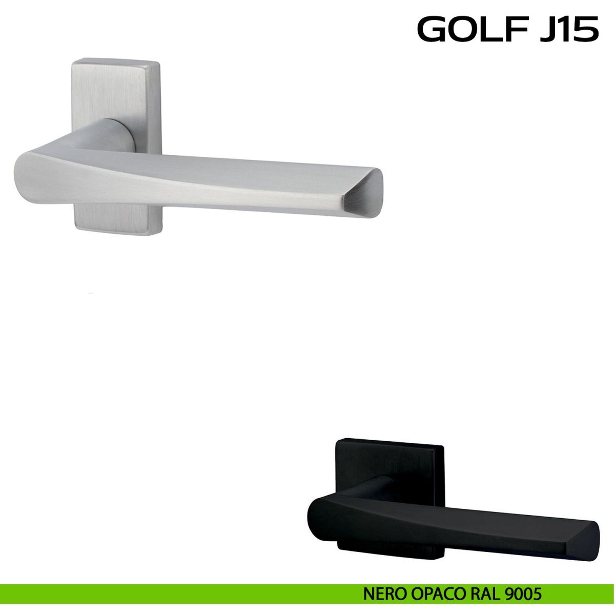 Maniglia per porta interna Golf J15 Reguitti con rosetta rettangolare. Design by Studio Reguitti.