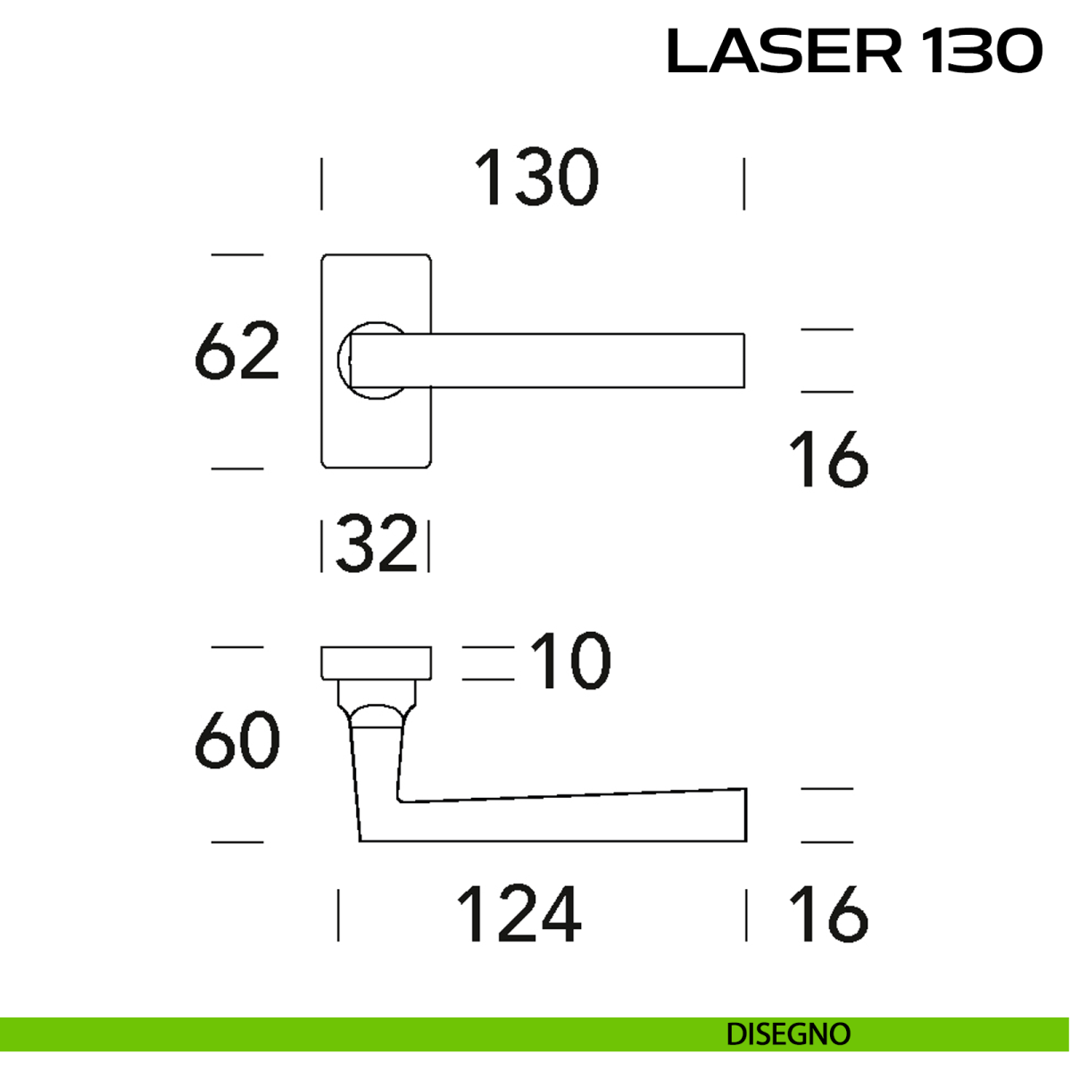 Maniglia per porta interna Laser 130 Reguitti con rosetta rettangolare. Design by Studio Reguitti.