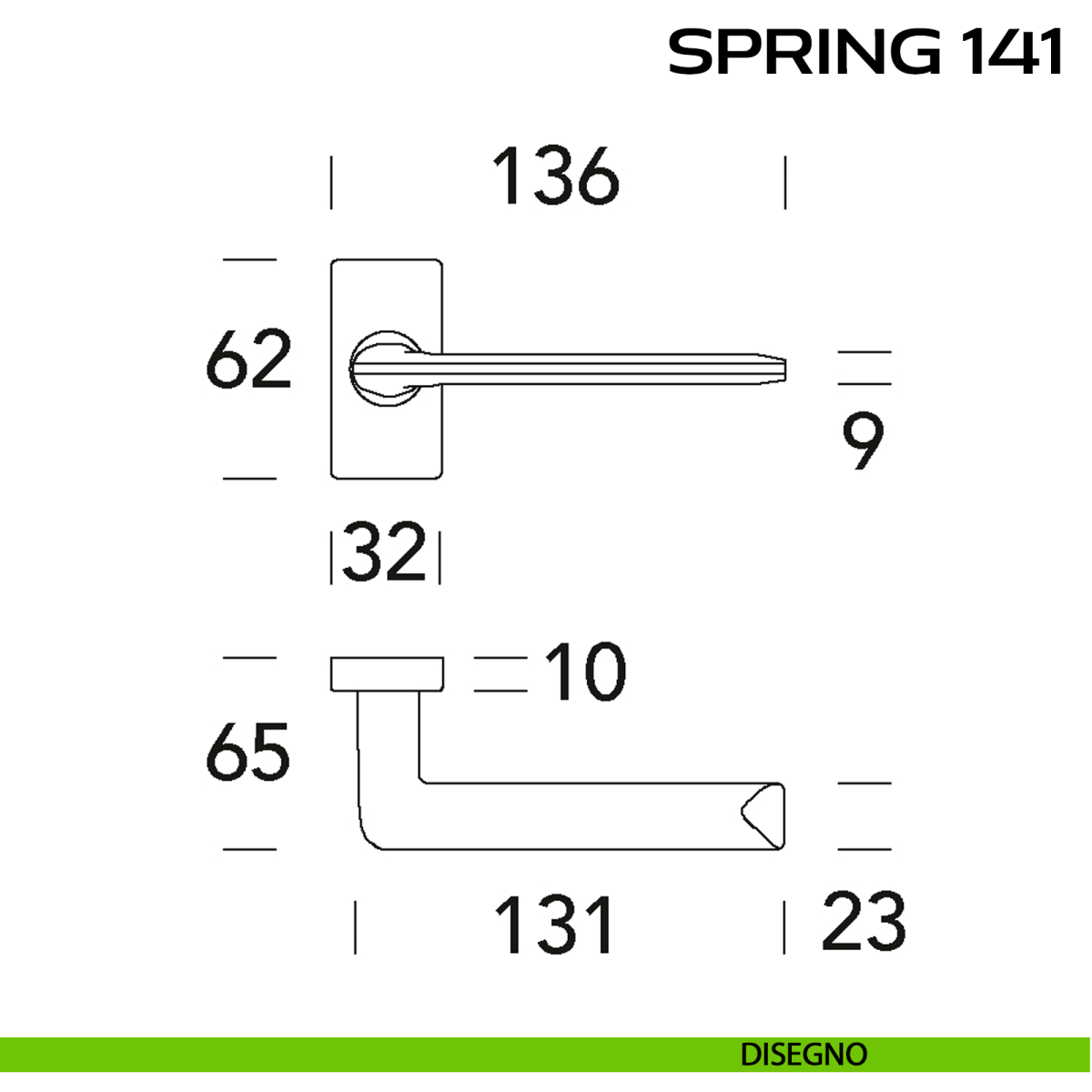Maniglia per porta interna Spring 141 Q. Reguitti con rosetta quadrata.