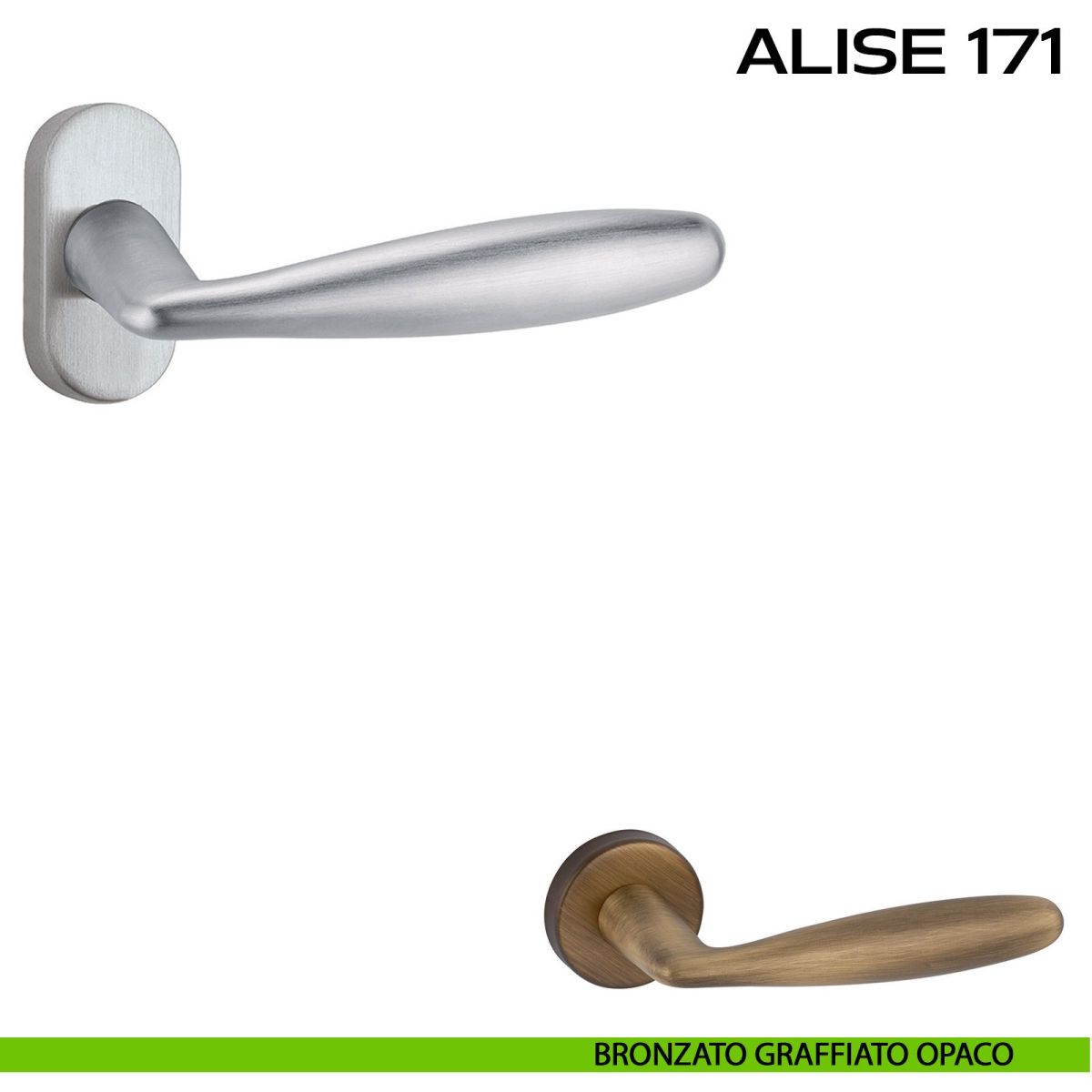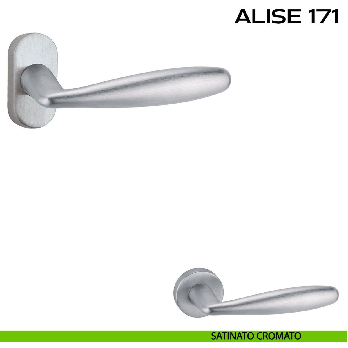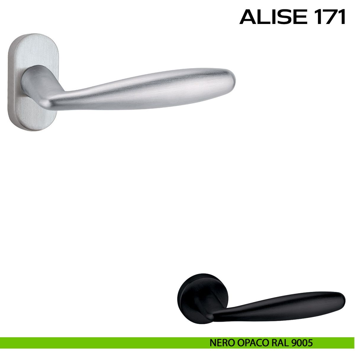 Maniglia per porta interna Alise 171 Reguitti con rosetta rettangolare. Design by Studio Reguitti.