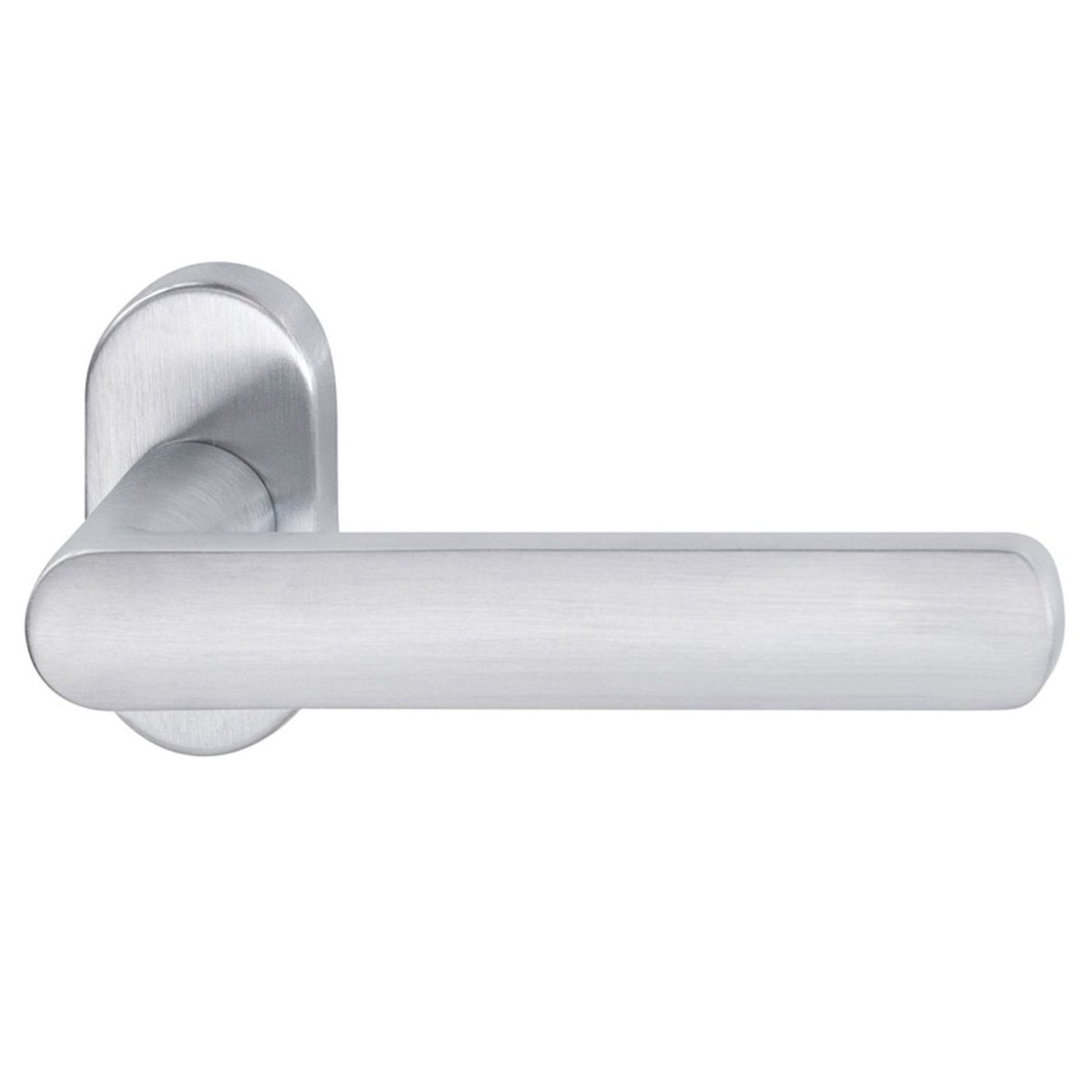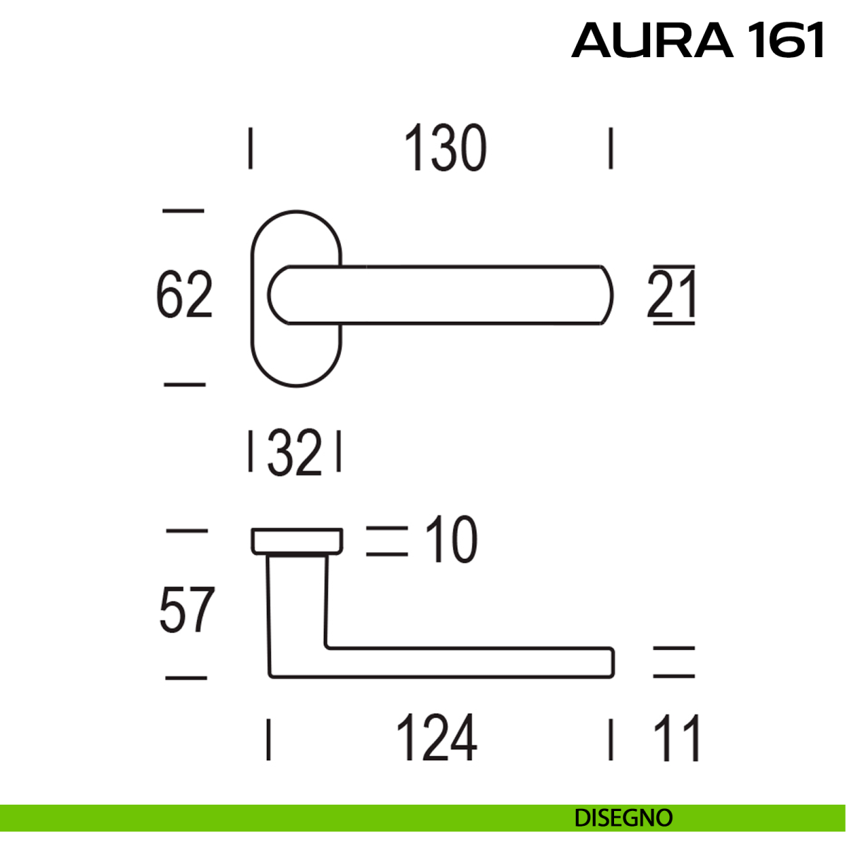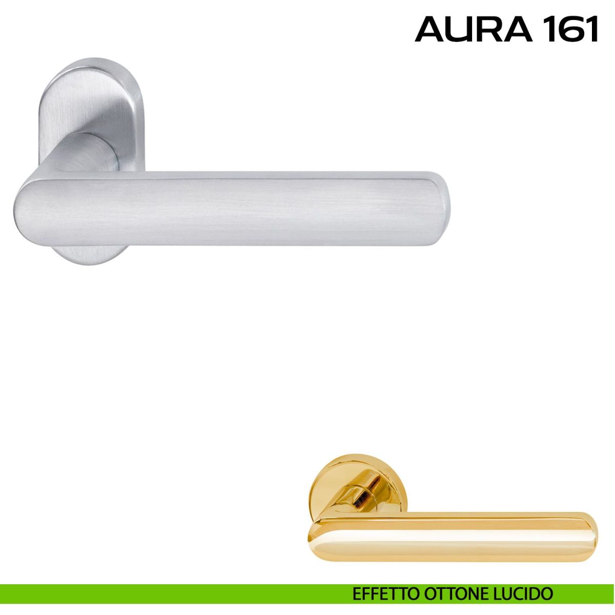 Maniglia per porta interna Aura 161 Reguitti con rosetta ovale. Design by Studio Reguitti.