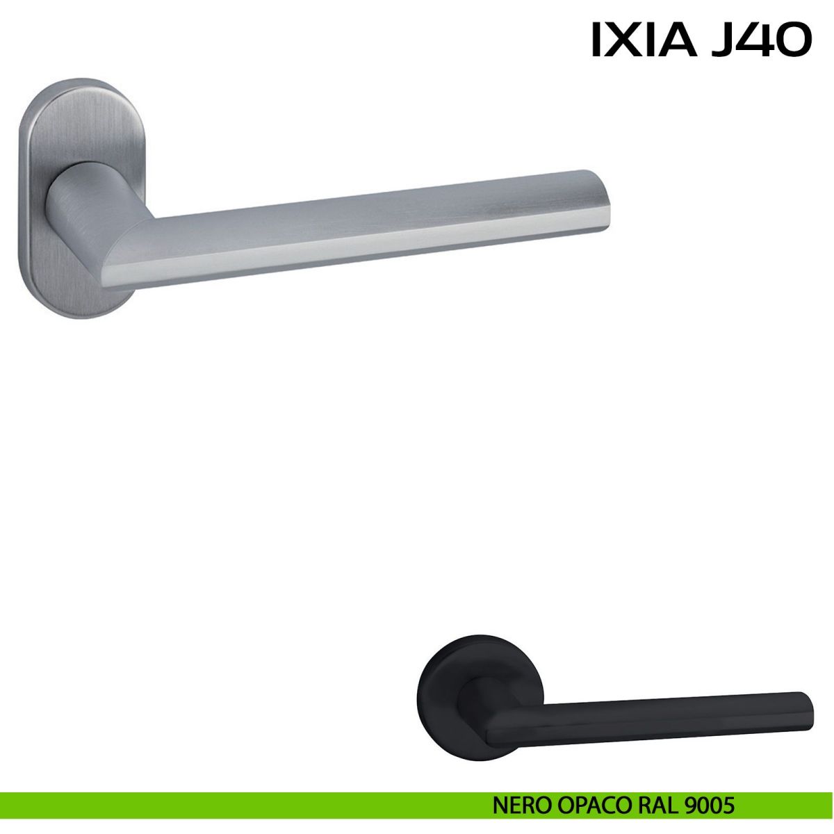 Maniglia per porta interna Ixia J40 Reguitti con rosetta ovale. Design by Studio Reguitti.
