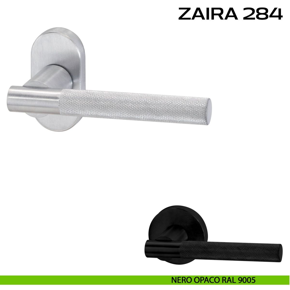 Maniglia per porta interna Zaira 284 Reguitti con rosetta ovale. Design by Studio Reguitti.