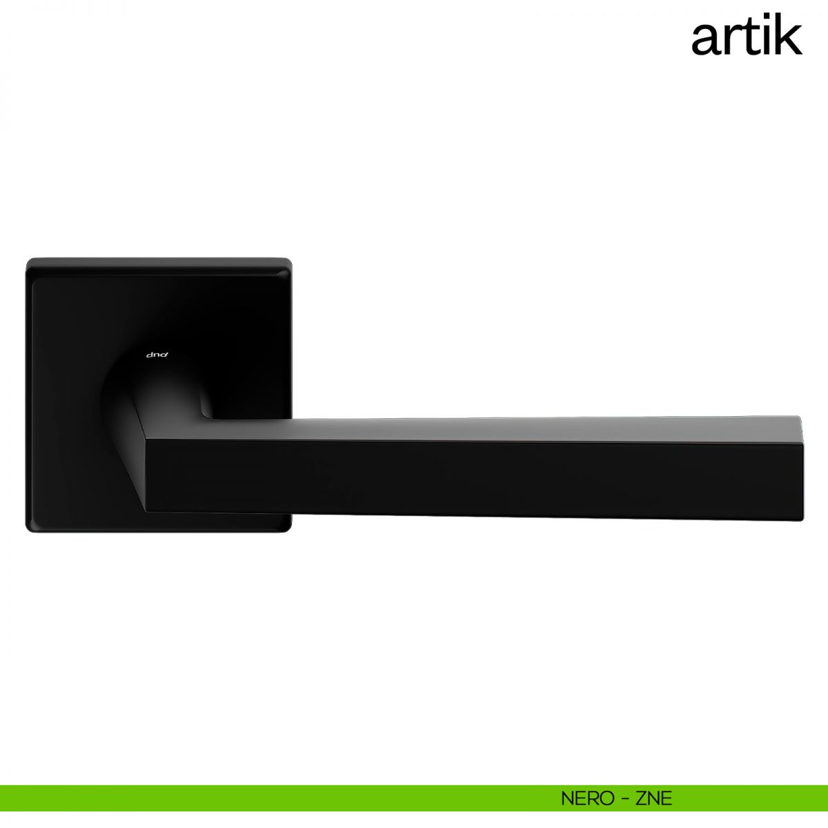 Maniglia per porta interna Artik dnd handles con rosetta e bocchetta quadrata. Design by Dnd.