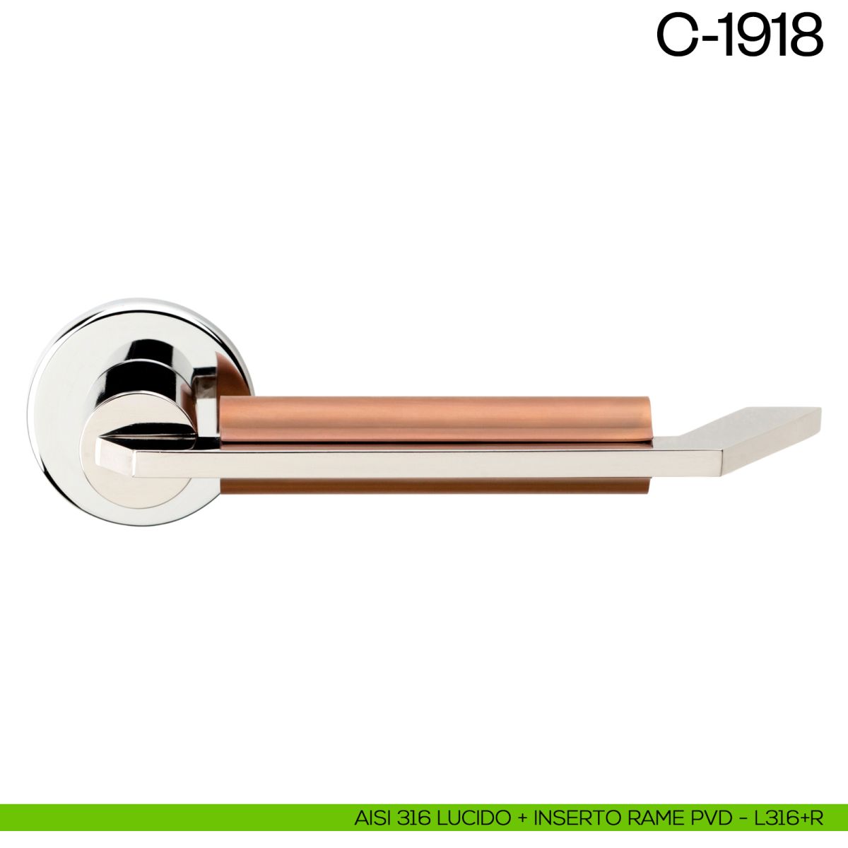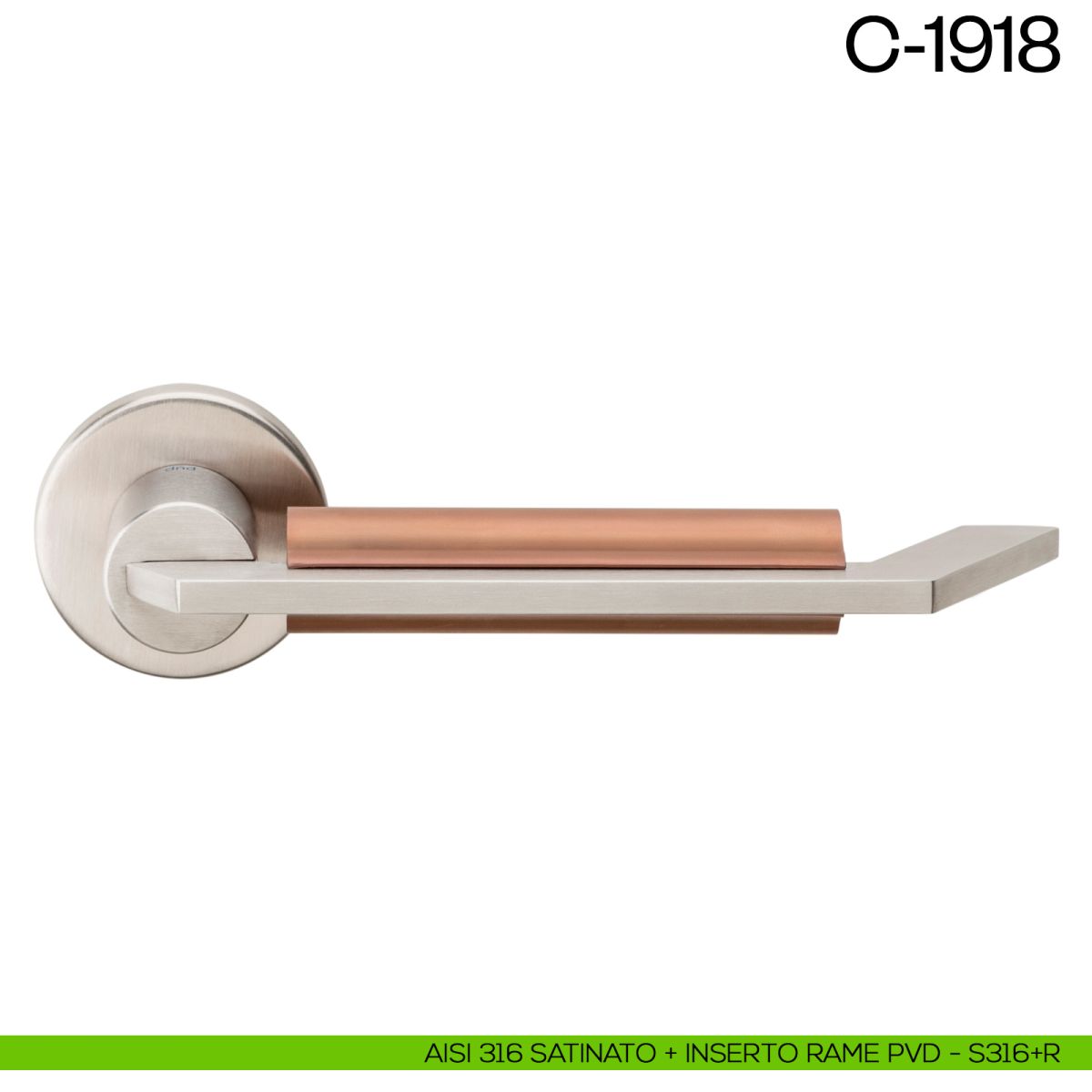 Gli Industrial Designer e Architetti Achille Castiglioni e Gianfranco Cavaglià progettano una nuova serie di maniglie di design per porte interne, che porta il nome di C-1918. La serie C-1918 dnd Martinelli appartiene alla linea di maniglie per porte in rame e acciaio inox AISI 316. Una maniglia ma anche un oggetto di design unico, caratterizzata dalla sapiente unione di materiale diversi, l'acciaio e il rame. Un progetto inedito, riscoperto e prodotto da DND con grande orgoglio.