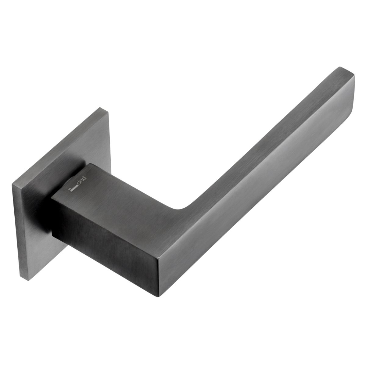 Maniglia per porta interna Edra 02 dnd Handles con rosetta e bocchetta quadrata fine. Design by Mauro Ronchi.