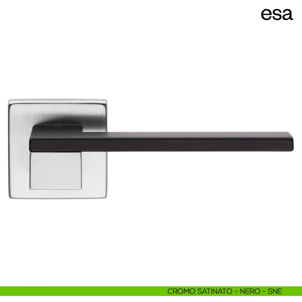 Maniglia per porta interna Esa dnd Handles con rosetta e bocchetta quadrata.