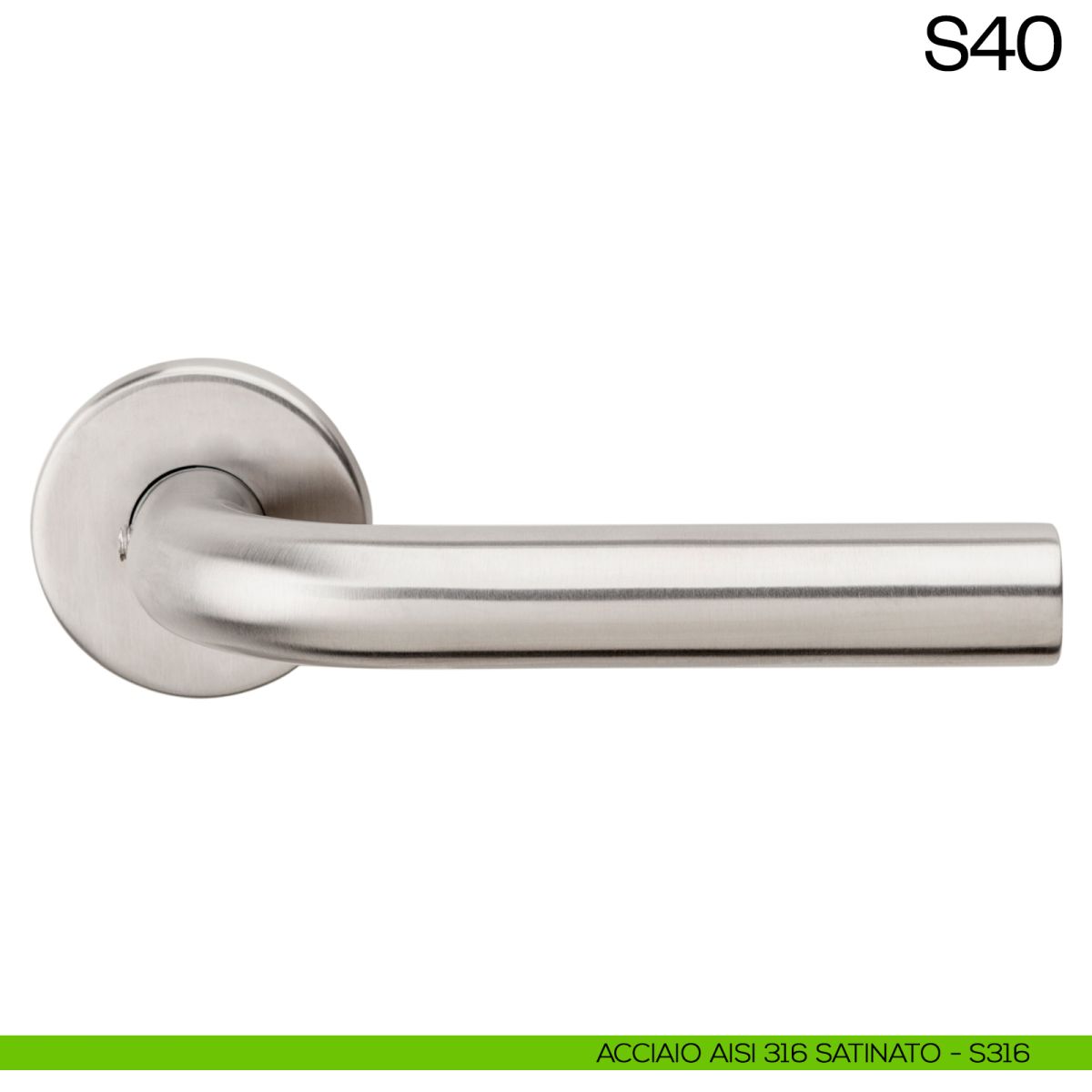 S40 dnd viene offerta con diversi tipi di versione, il foro patent (comunemente chiamato foro chiave), la versione yale (foro cilindro), placca cieca senza foratura (dove la chiusura non è necessaria) e nottolino WC (utilizzato in genere nelle porte dei bagni o stanze da letto). Per un ottimale risultato di installazione è consigliato attenersi alle istruzioni di montaggio di cuoi ogni singola maniglia S40 dnd Martinelli è corredata.