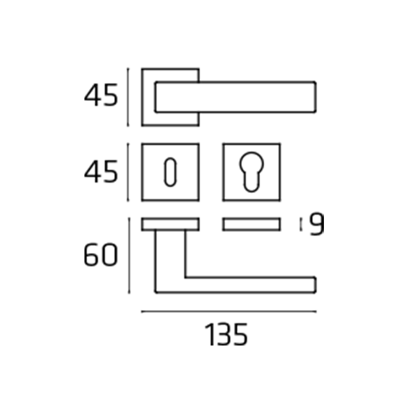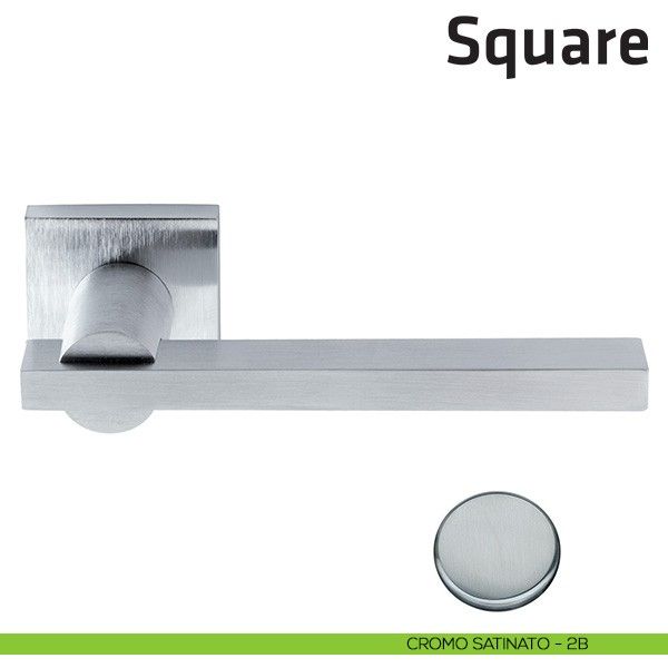 Maniglia per porta interna Square Comit con rosetta e bocchetta quadrata foro patent.