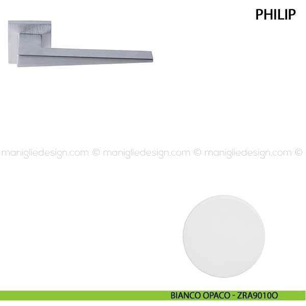 Maniglia per porta interna Philip Comit con rosetta e bocchetta quadrata.