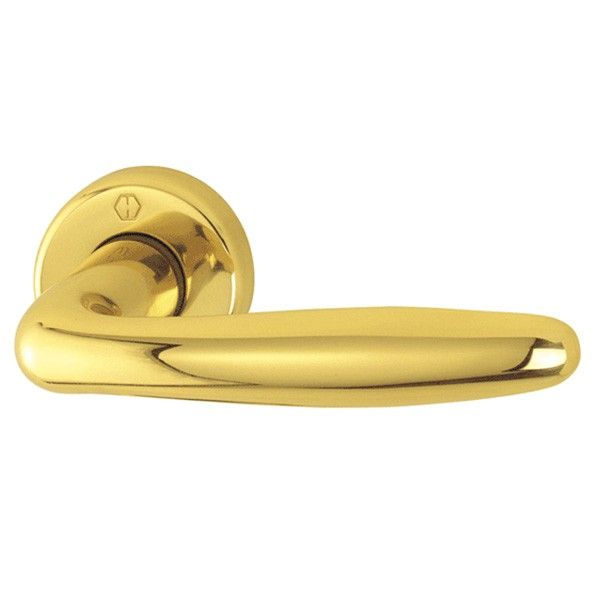 Maniglia per porta interna Alessandra ottone lucido Manigliedesign con rosetta e bocchetta tonda.