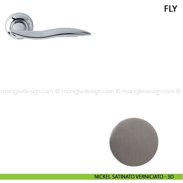 Maniglia per porta interna Fly Comit con rosetta e bocchetta tonda foro patent.