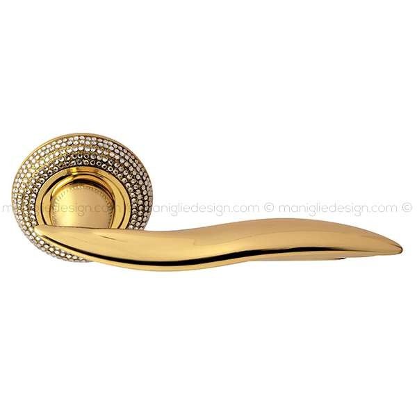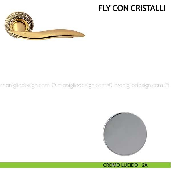 Maniglia con cristalli Swarovski per porta interna Fly con cristalli Comit con rosetta e bocchetta tonda foro patent.