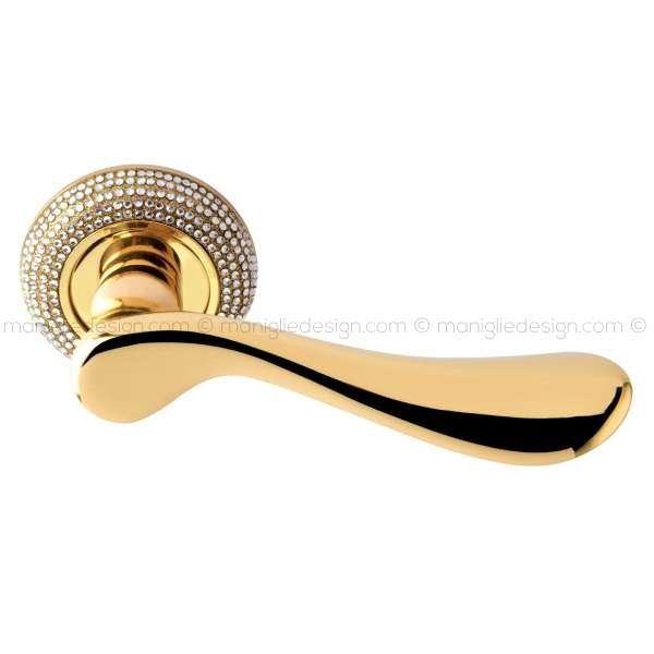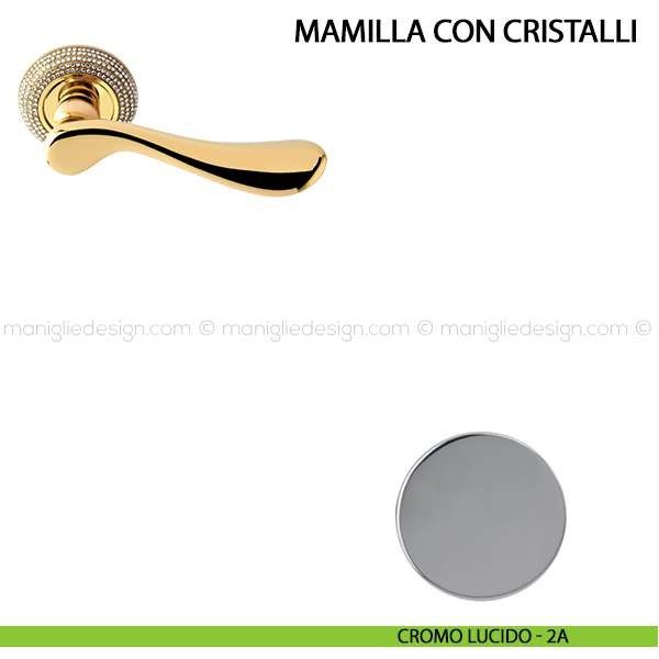 Maniglia con cristalli Swarovski per porta interna Mamilla con cristalli Comit con rosetta e bocchetta tonda foro patent.