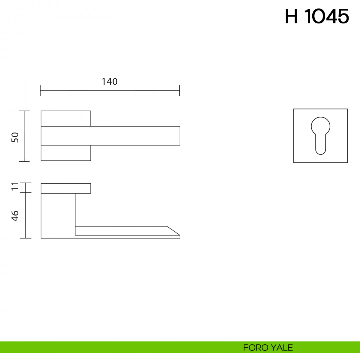 Maniglia per porta interna H 1045 Valli collezione Fusital con rosetta e bocchetta quadrata. Design by Yoshimi Kono.