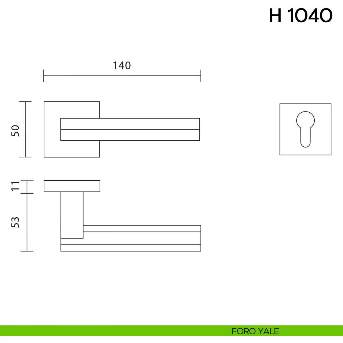 Maniglia per porta interna H 1040 Valli collezione Fusital con rosetta e bocchetta quadrata. Design by Gabriele e Oscar Buratti.