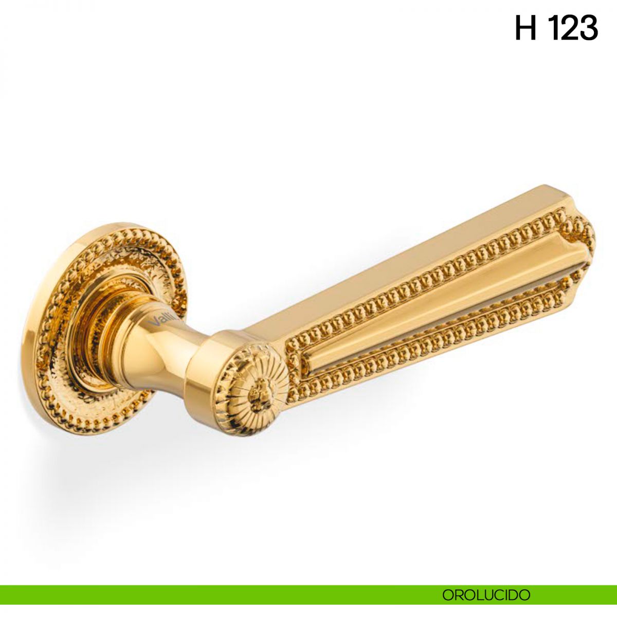Maniglia per porta interna H 123 Valli collezione Lab con rosetta e bocchetta tonda. Design by Valli Workshop.