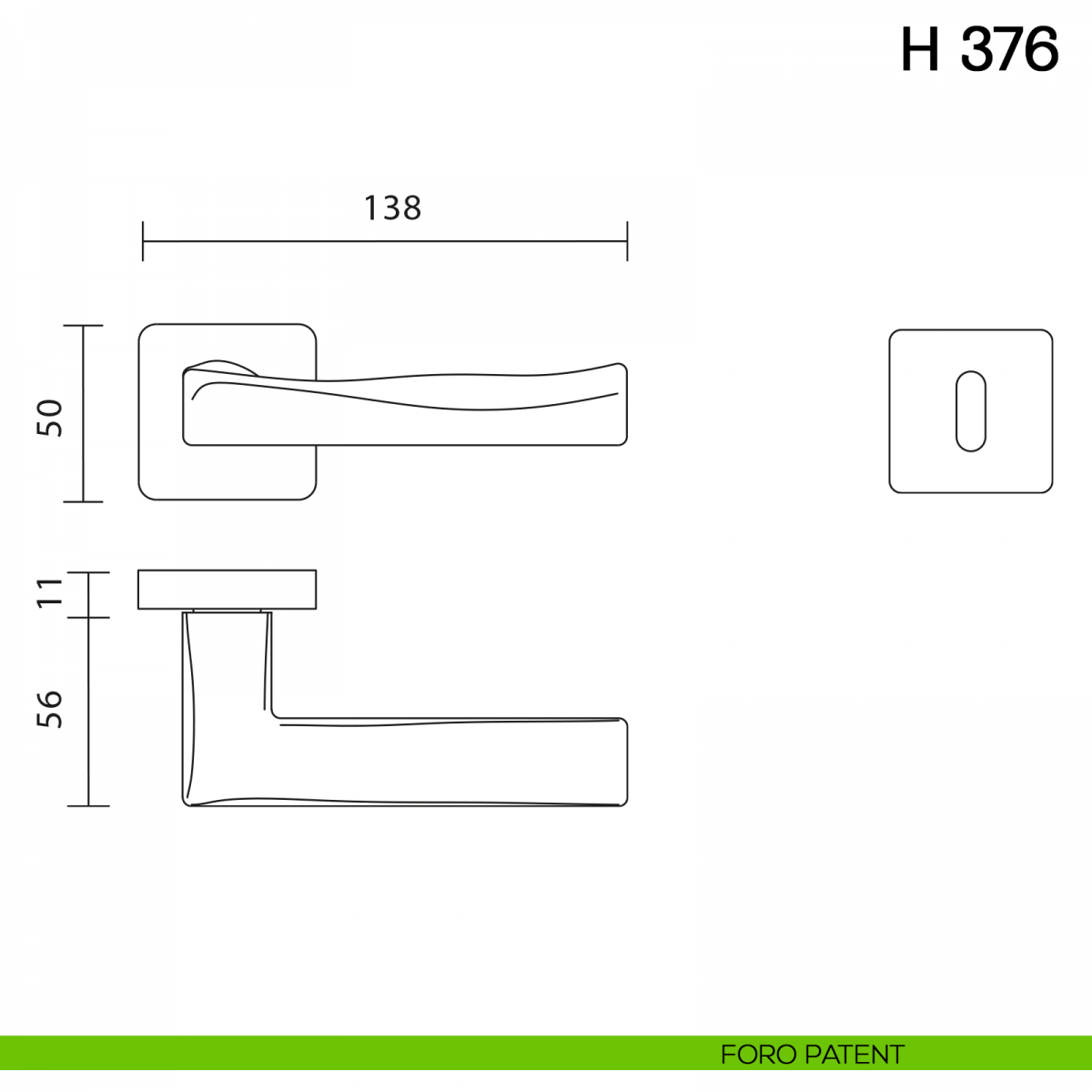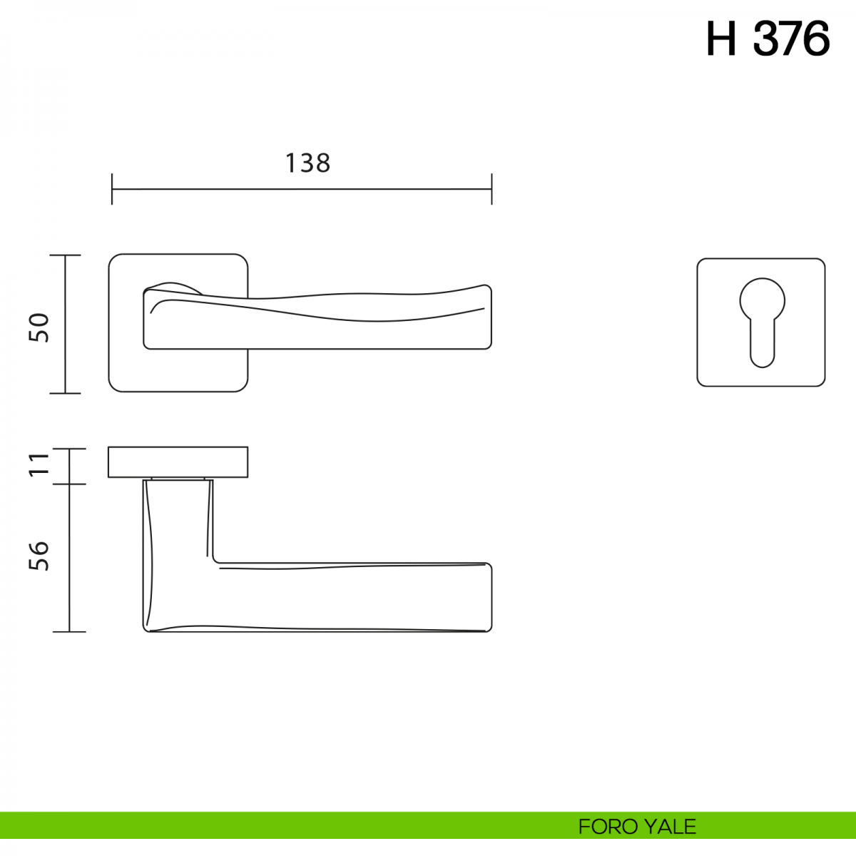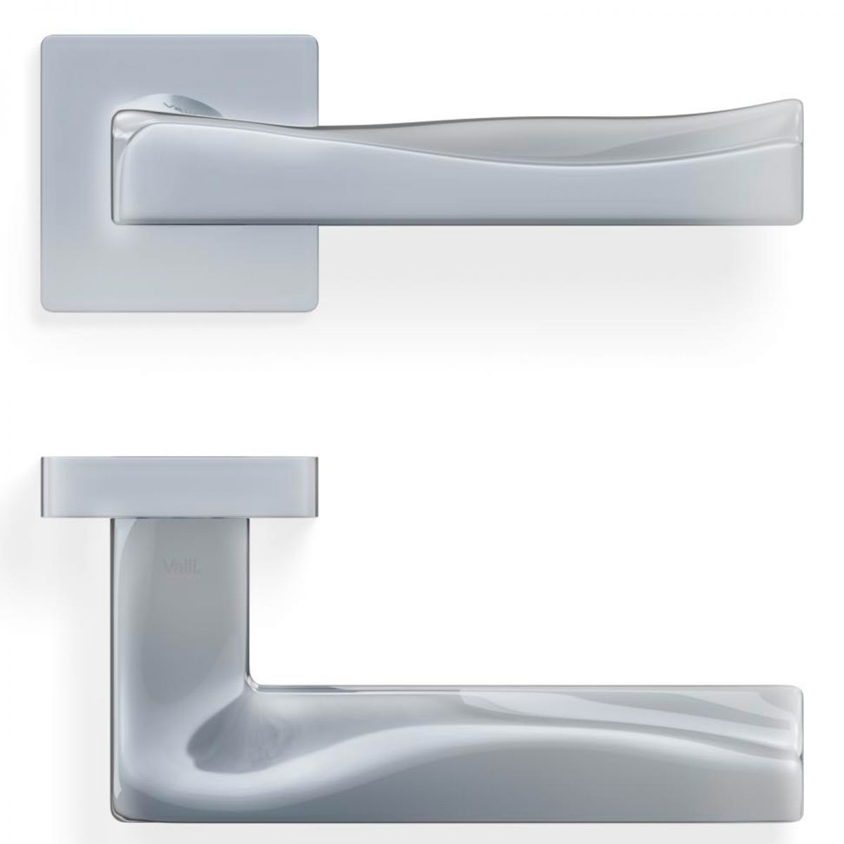 Maniglia per porta interna H 376 Valli collezione Fusital con rosetta e bocchetta quadrata. Design by Giancarlo Vegni.
